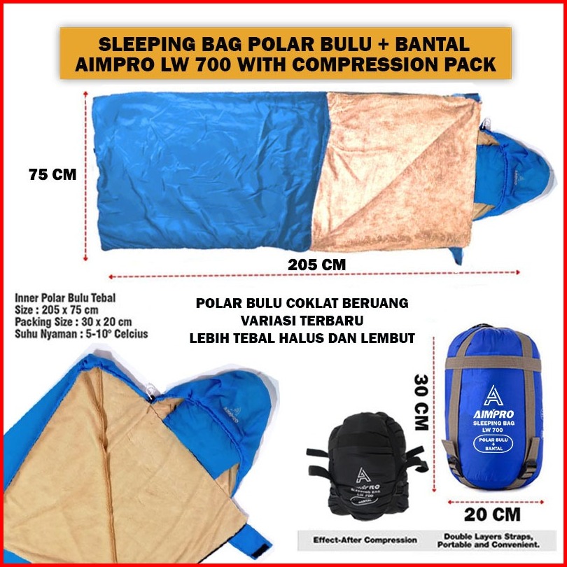 Aimpro Sleeping Bag Polar Bulu Tebal Bantal - Sb Bulu Tebal Lw700