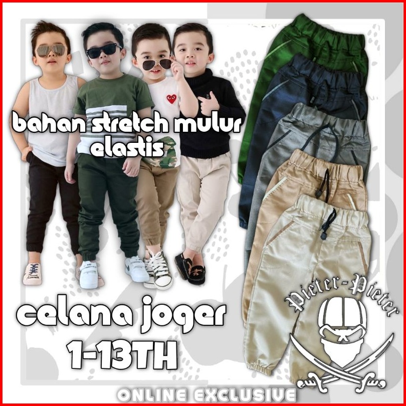 Celana Chino Anak Celana Joger Panjang Anak Laki Laki Celana Joger Anak Perempuan 1-13 Tahun Bahan Tebal Mulur Stretch E