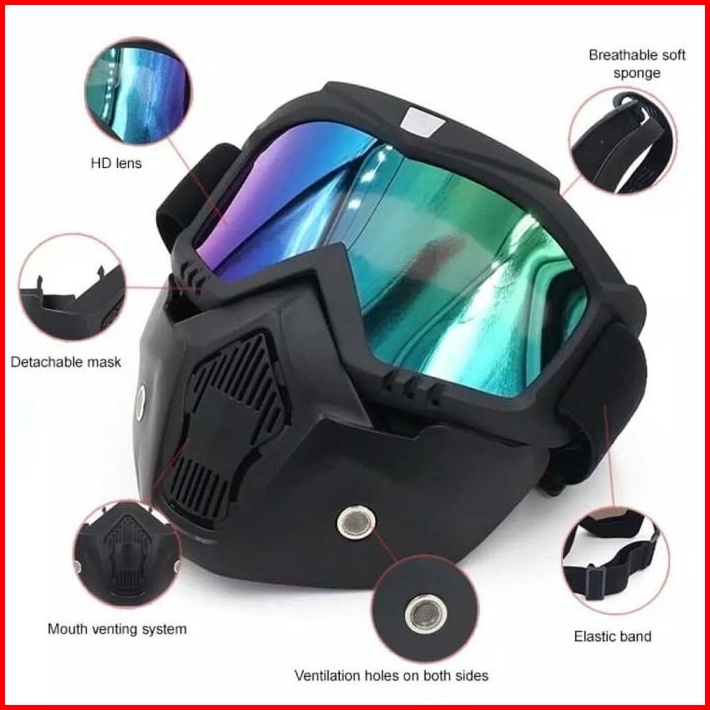 Ojio - Google Mask Helm Masker Google Google Glasses Kacamata Masker Retro Penutup Muka - Google Mask Kaca Mata Helm Mot