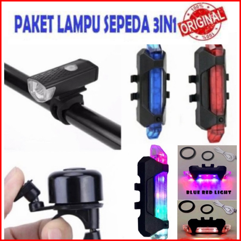 Promo 3 In 1 Paketan Lampu Depan Lampu Belakang Dan Bel Sepeda