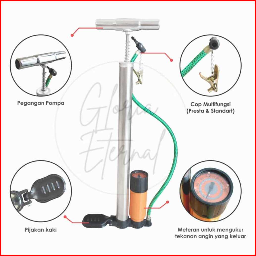 Gloria Pompa Angin Sepeda Dan Motor 60cm Kompa Mobil Meter Manual Hand Pump Portable Pompa Ban Sepeda Motor Cab Termurah