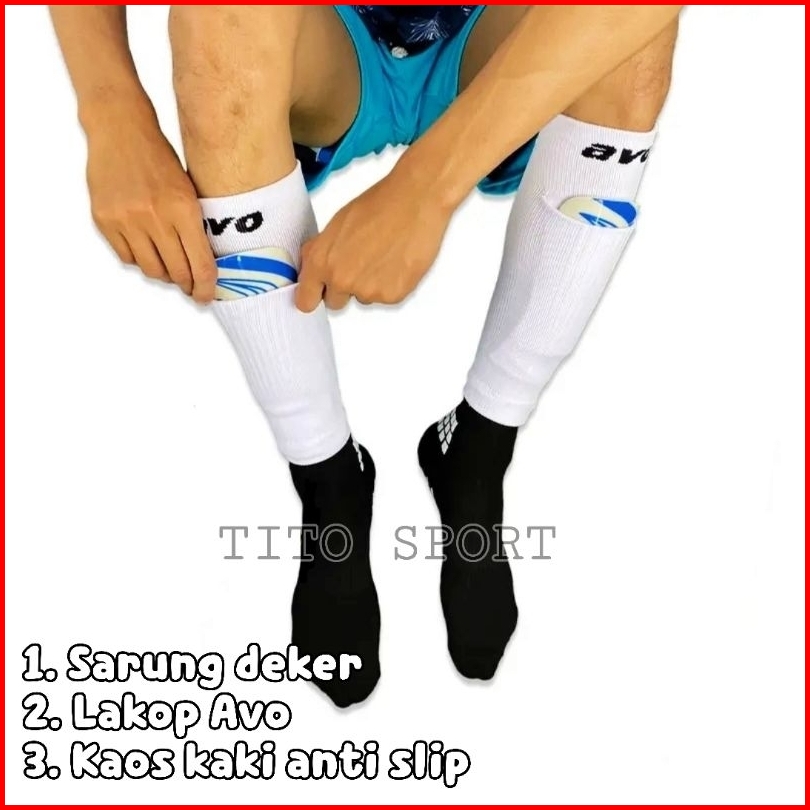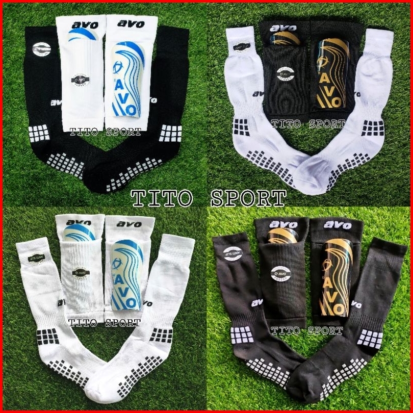 Paket Lengkap Kaos Kaki Olahraga Dan Sarung Deker Pelindung Tulang Kering Sepak Bola Futsal Premium Original Avo