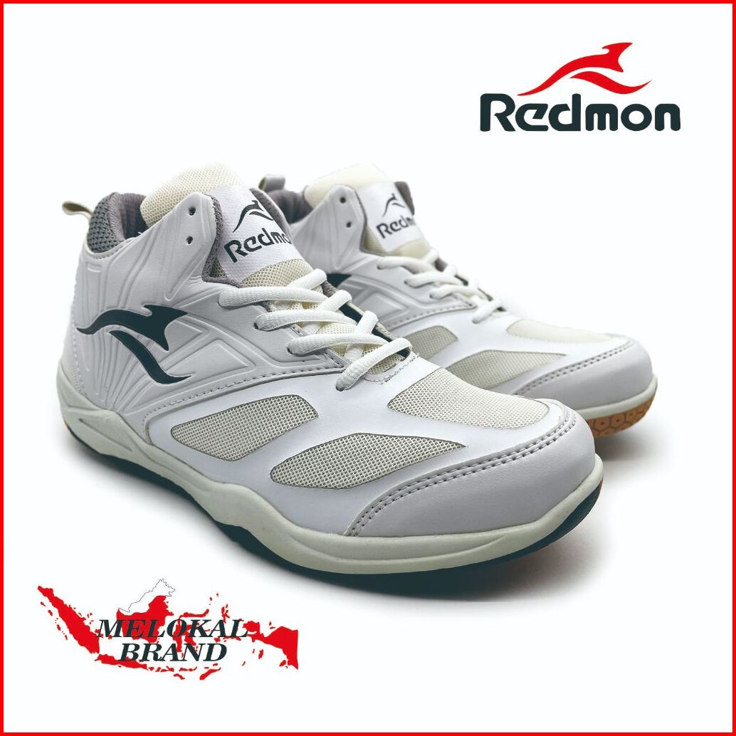 Redmon Sepatu Voli Hybrid Putih Abu Original Size 38-43 Sepatu Olahraga Badminton Basket Pria Wanita