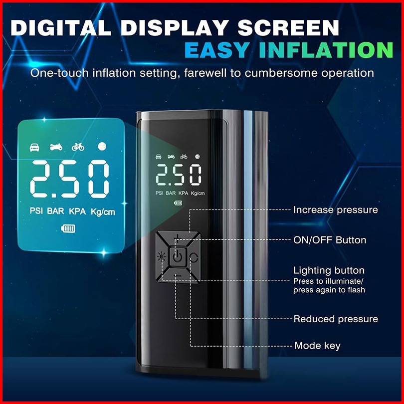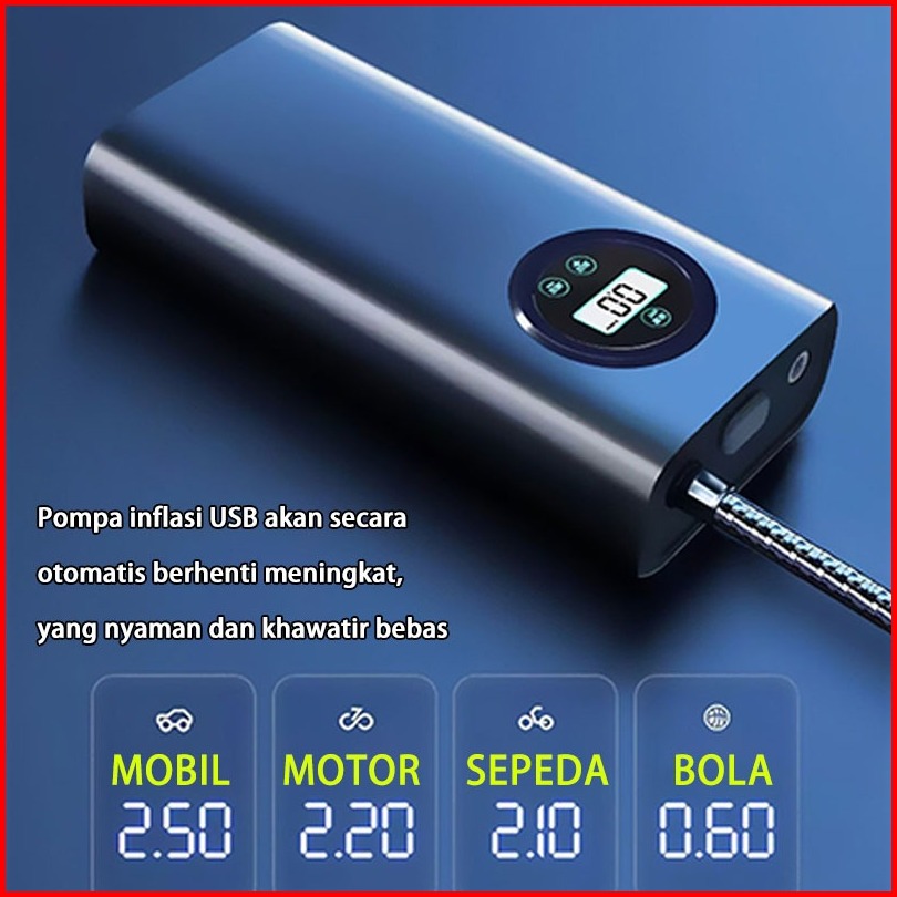 Pompa Ban Mobil Sepeda Motor Elektrik Cek Tekanan Angin Listrik Car Air Pump Tire Inflator Portabel