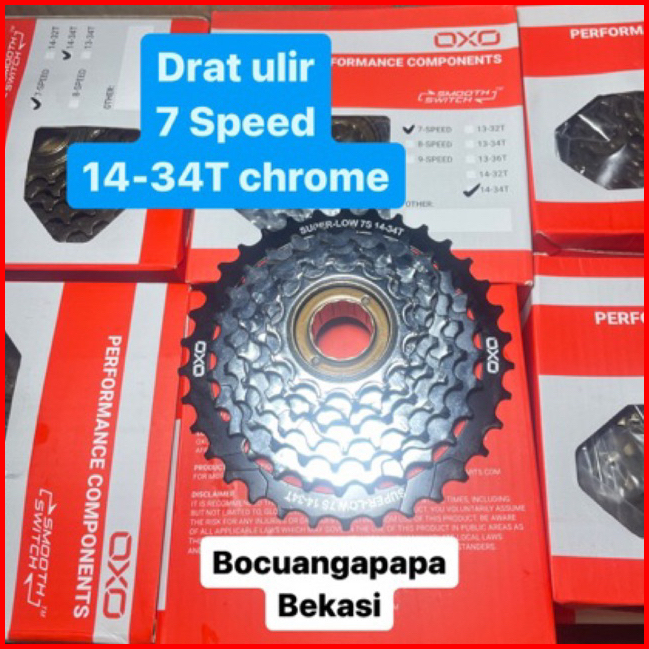 Sprocket Gear Drat Ulir Freewheel Megarange Oxo 7 Speed 14-34t Chrome