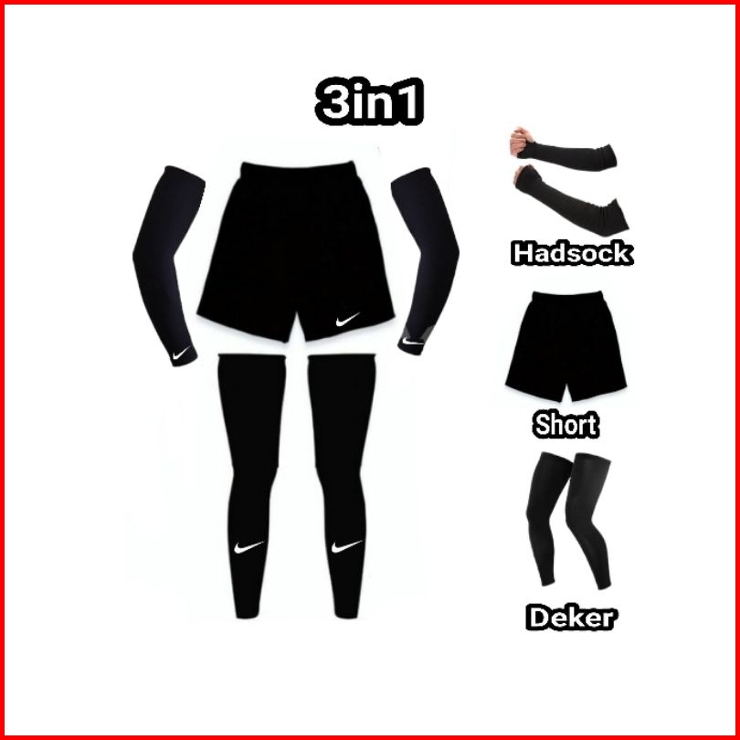 Short Manset Tangan Dan Kaki 3pcs Sepaket Olahraga Celana Pendek Handsock Deker Knee