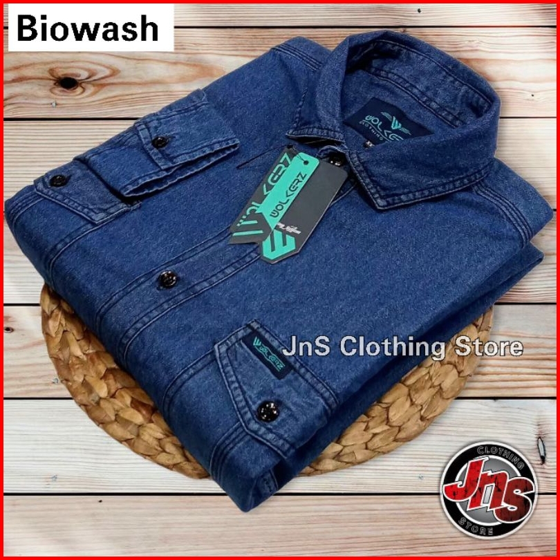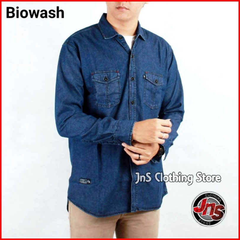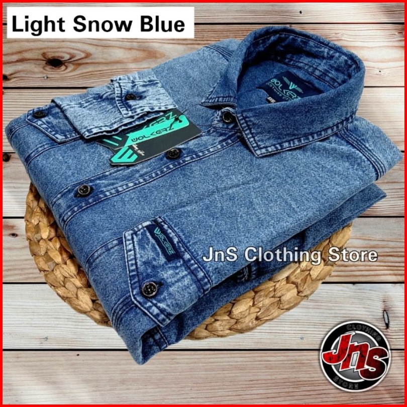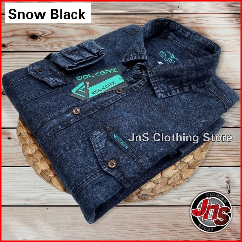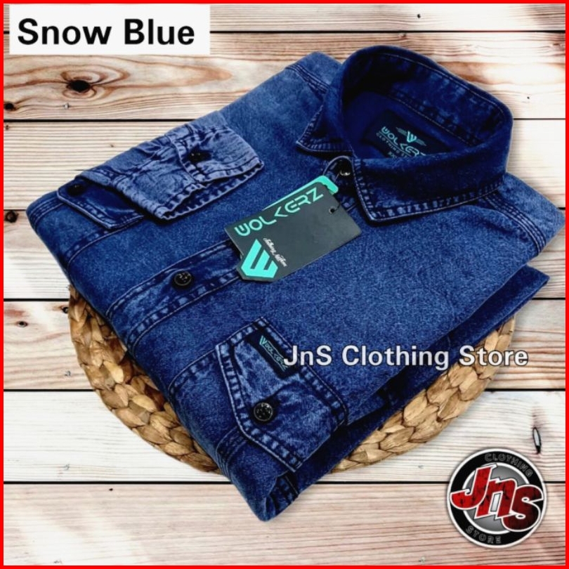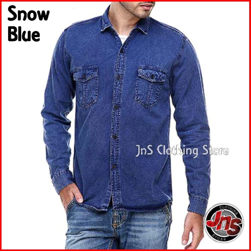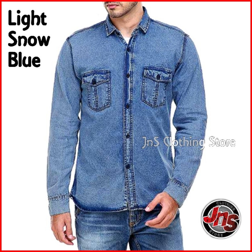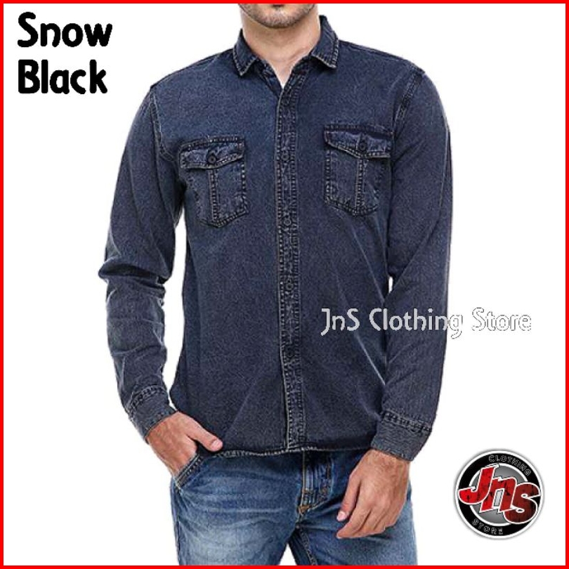 Baju Kemeja Hem Denim Jeans Pria Lengan Panjang Premium Distro Casual Shirt Snow Atasan Polos - Jns