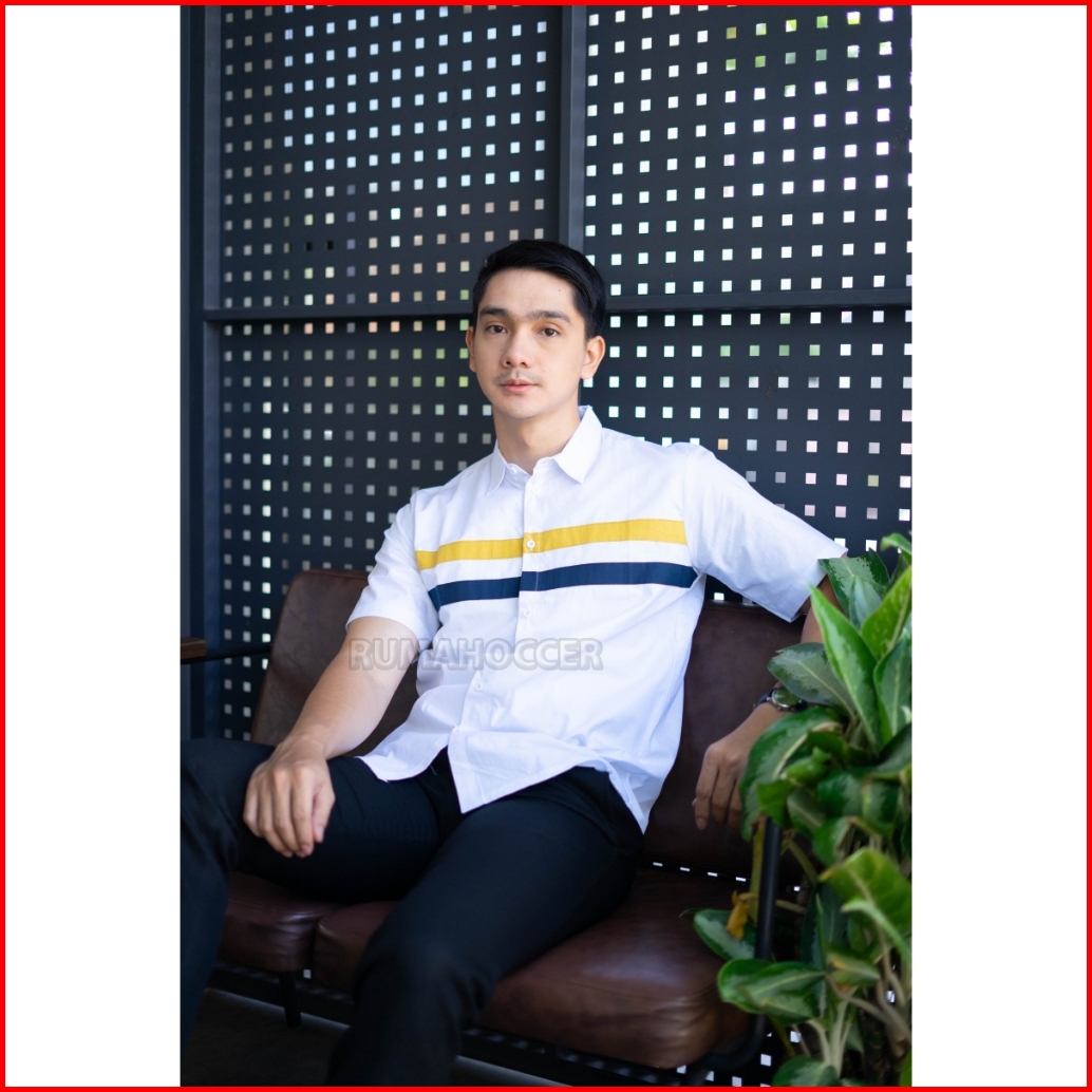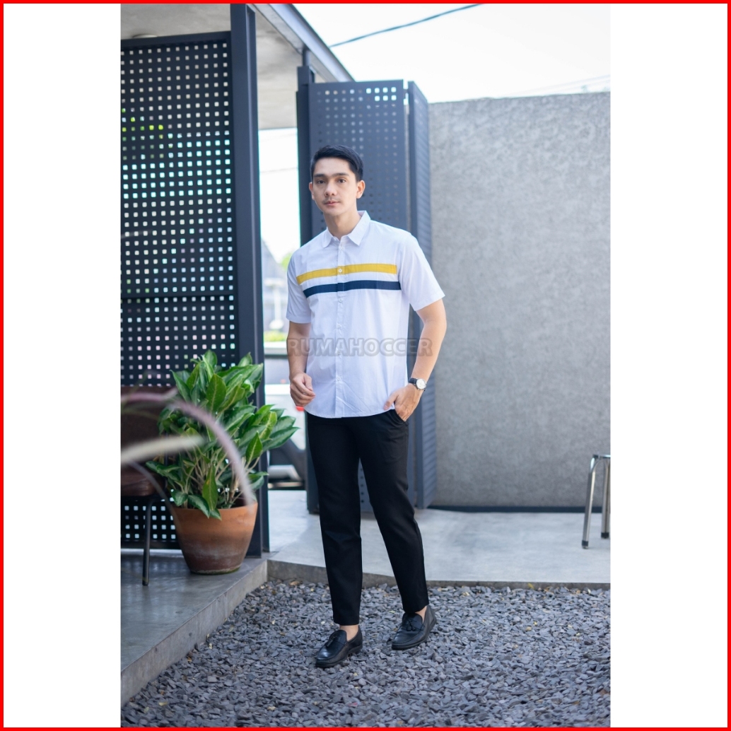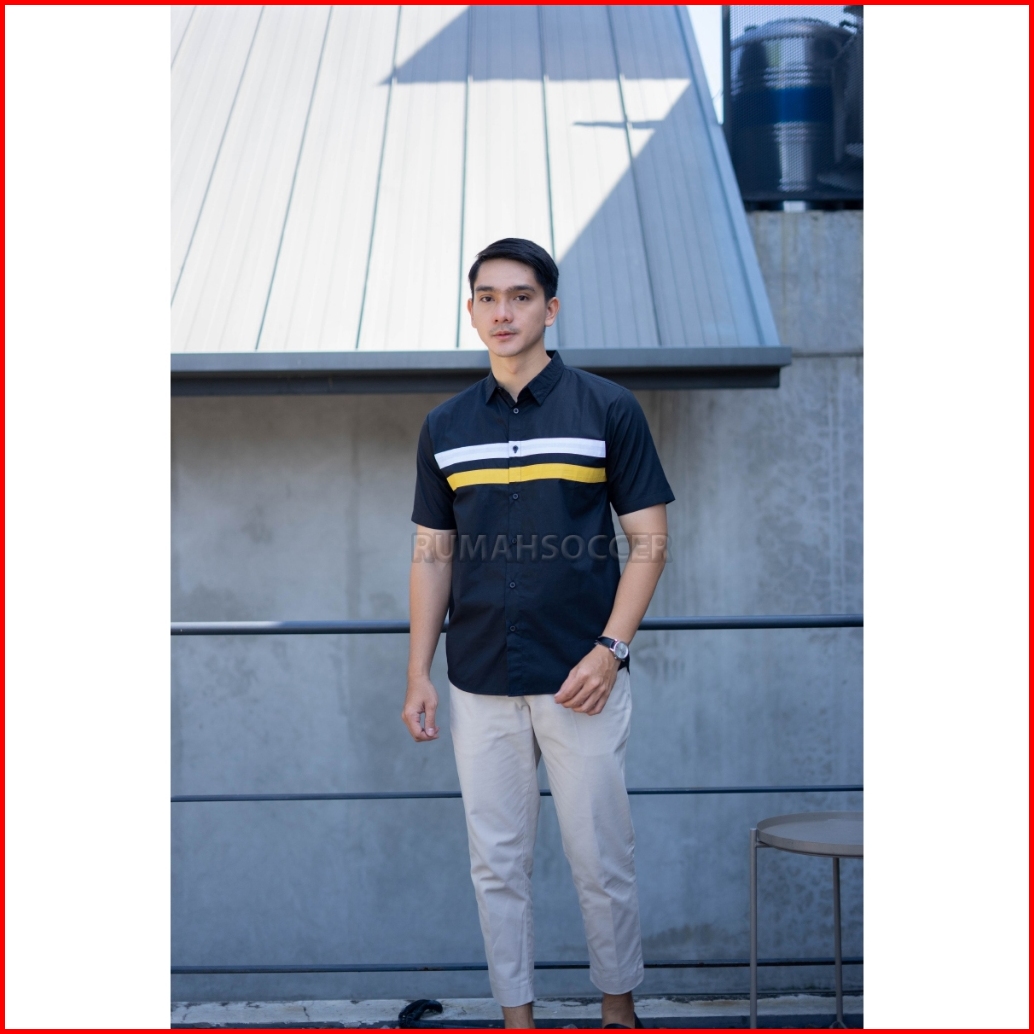 Folka Baju Kemeja Hem Pria Dewasa Lengan Pendek Hitam Polos Strip Kemeja Kantor Formal Casual Distro Bandung