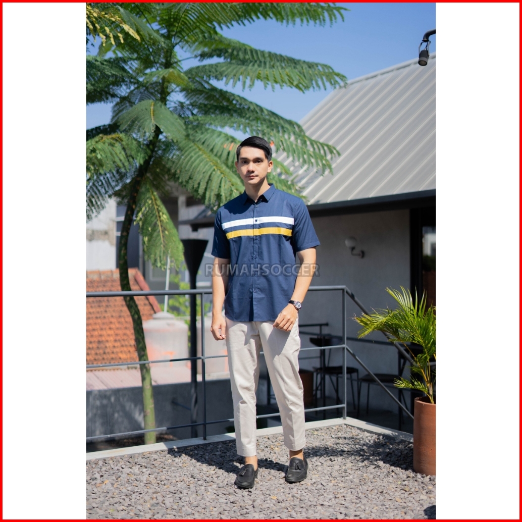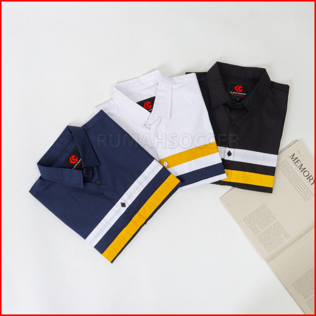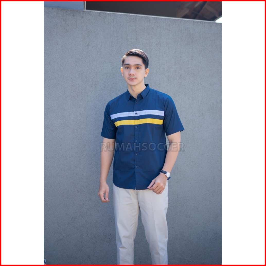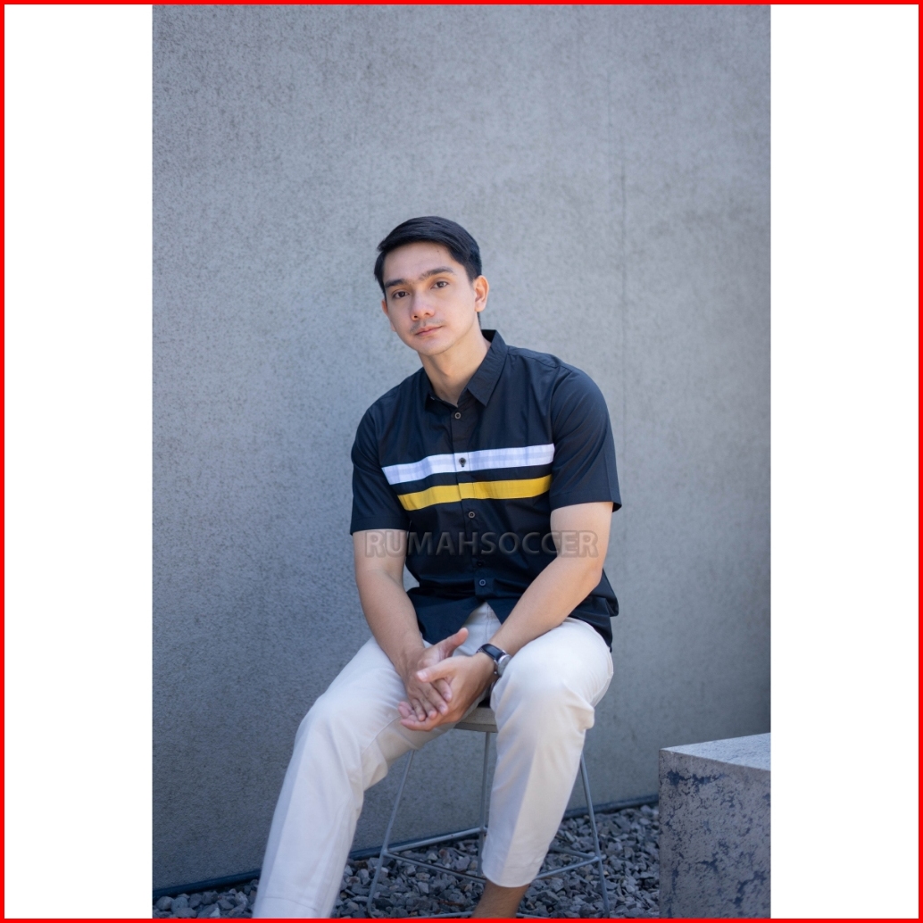 Folka Baju Kemeja Hem Pria Dewasa Lengan Pendek Hitam Polos Strip Kemeja Kantor Formal Casual Distro Bandung