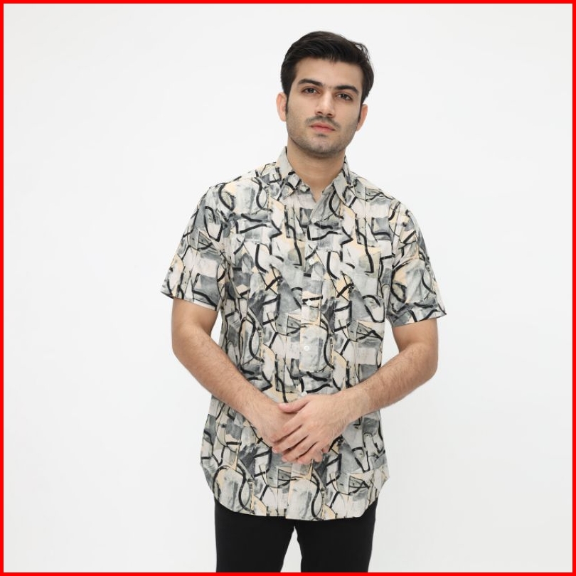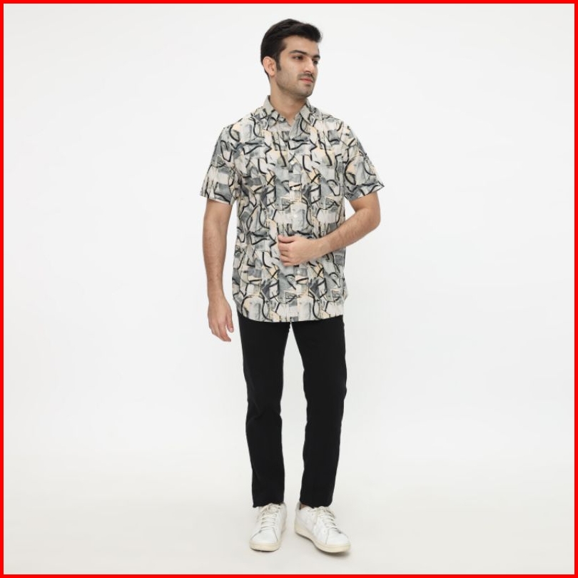 Bossqu21 Baju Kemeja Pria Lengan Pendek Modern Fit Katun Original 33240 Abu