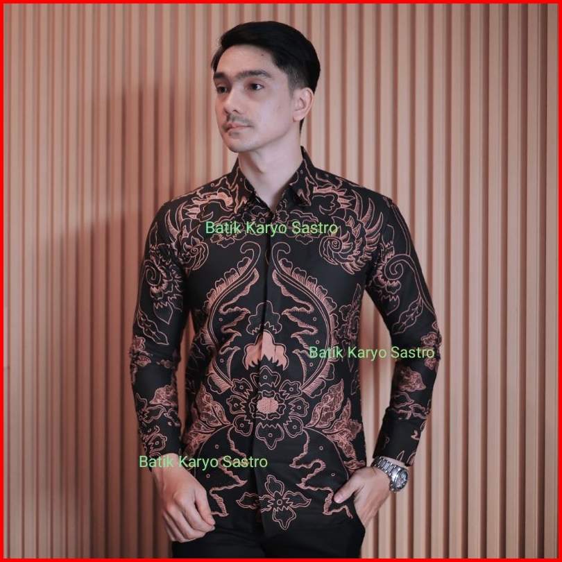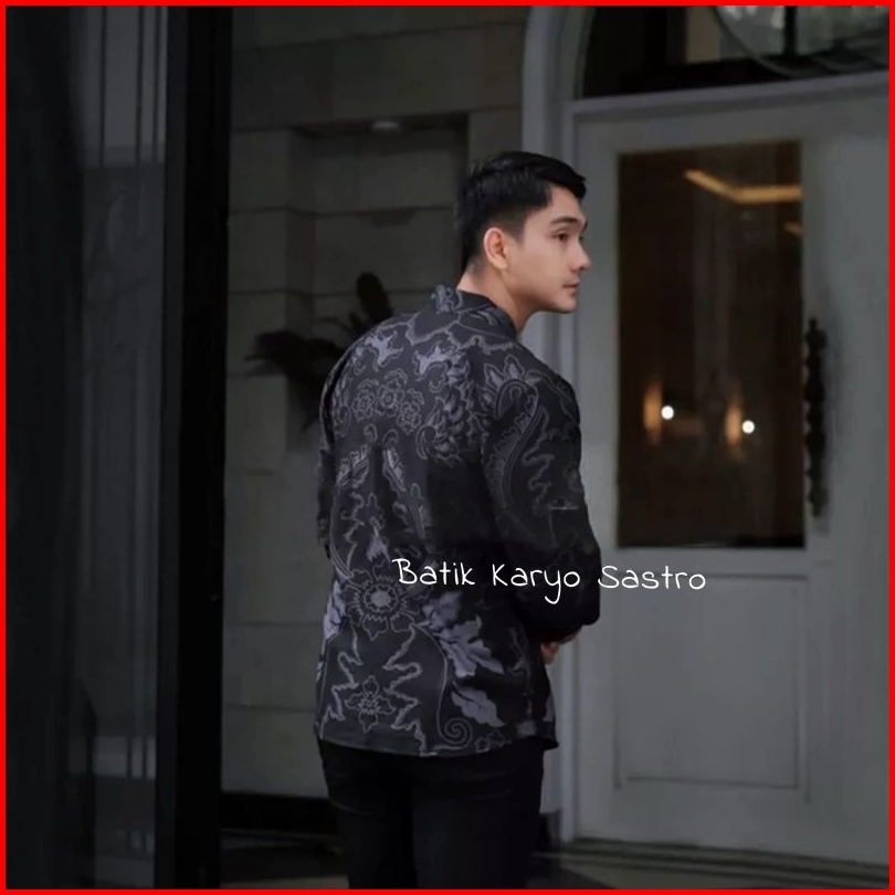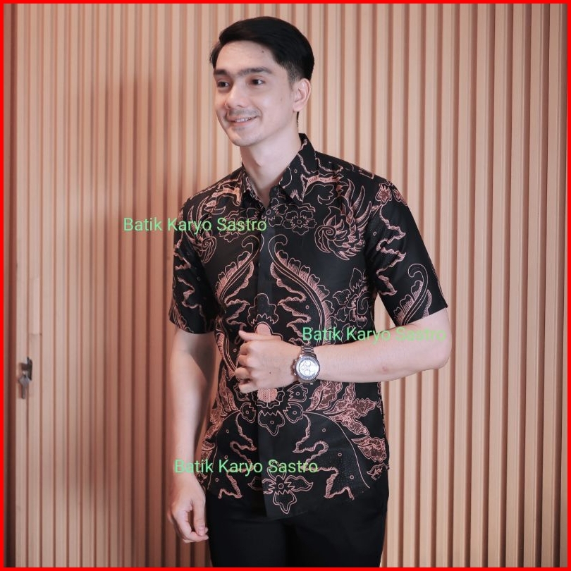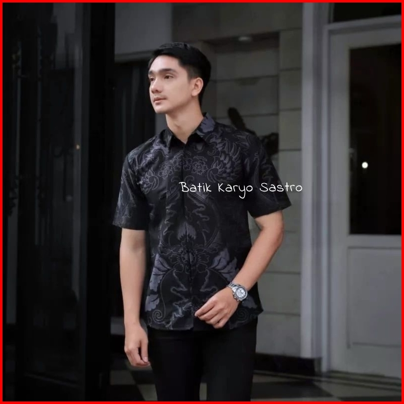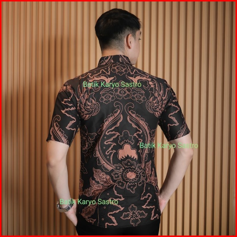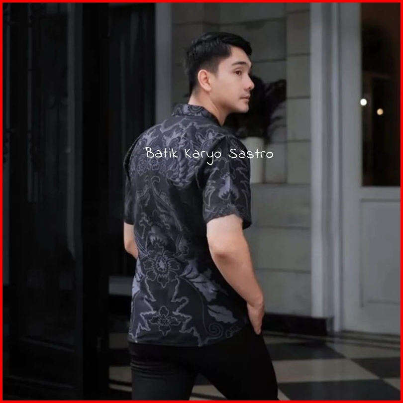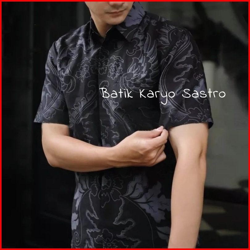 Baju Kemeja Batik Slimfit Pria Lengan Pendek Mahkota Abu Lapis Furing