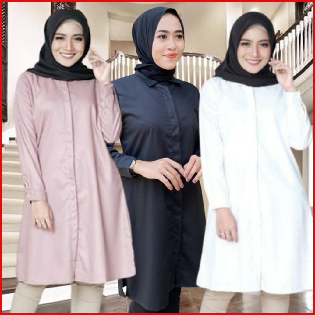 Long Tunik Jumbo Wanita Terbaru 2024 Bahan Katun Toyobo Polos Kemeja Wanita Panjang Elegan Mewah Kekinian