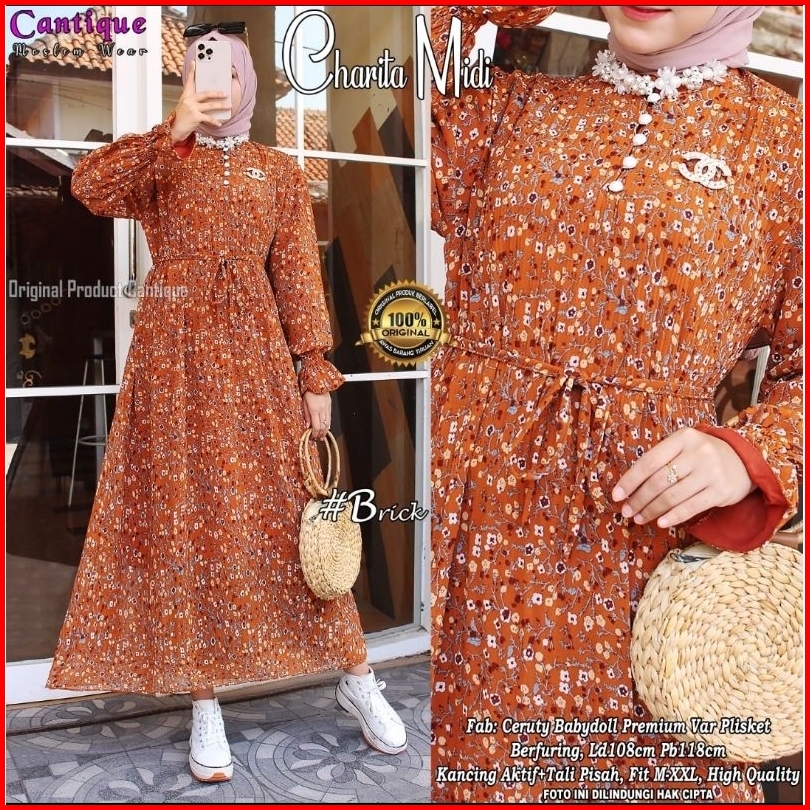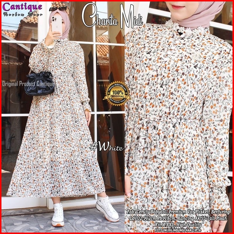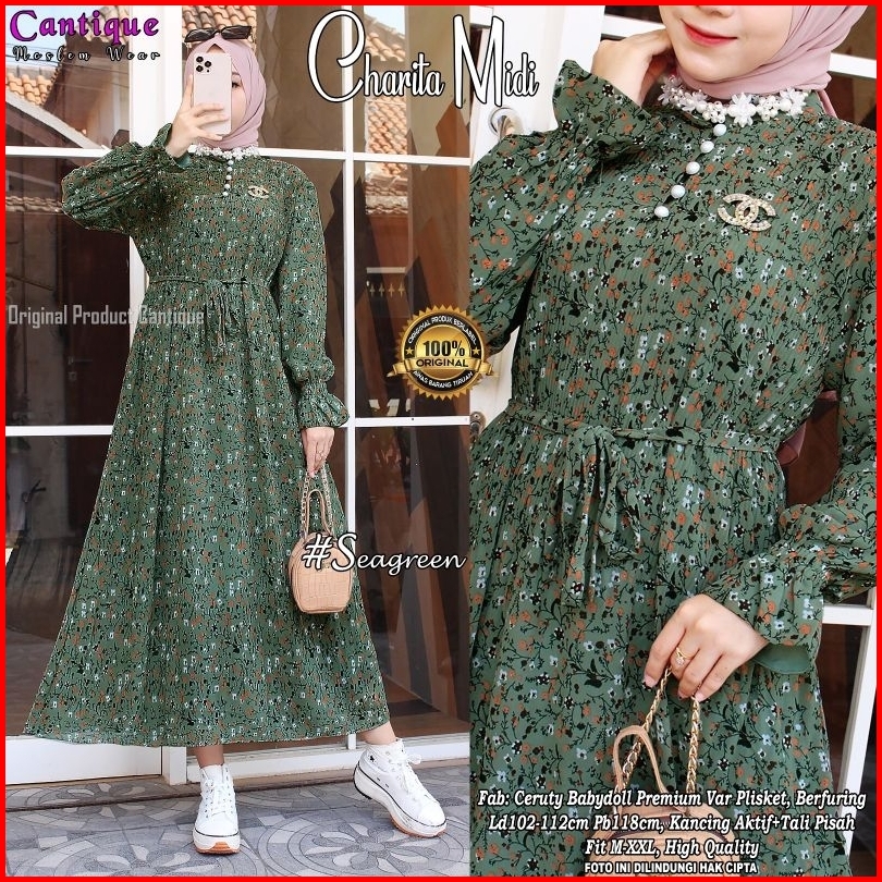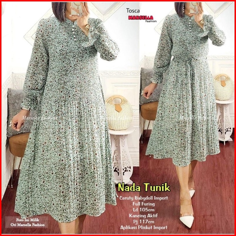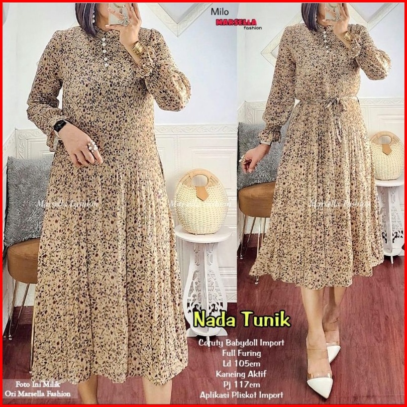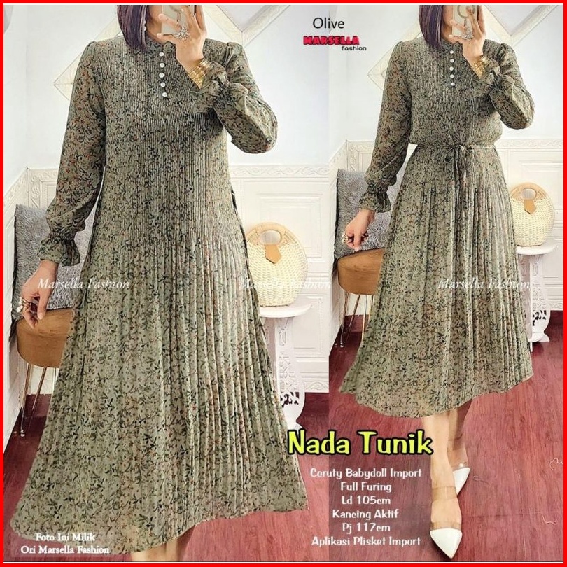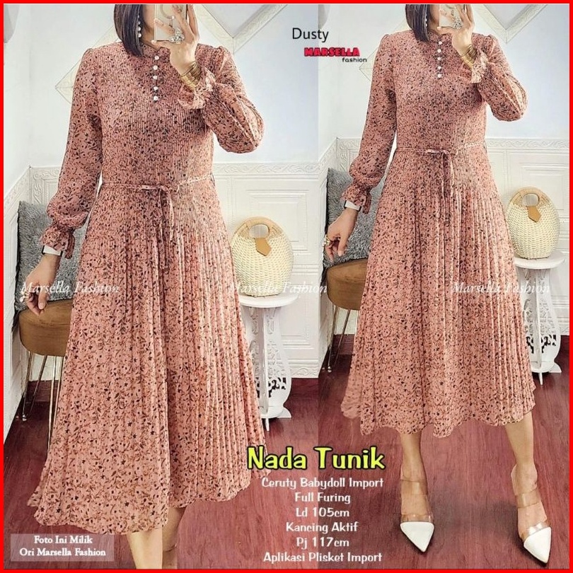 Nada Tunik Bahan Ceruty Plisket Lapis Furing Ld 105 Pj 117 Tali Lepasan Kancing Depan Motif Bunga