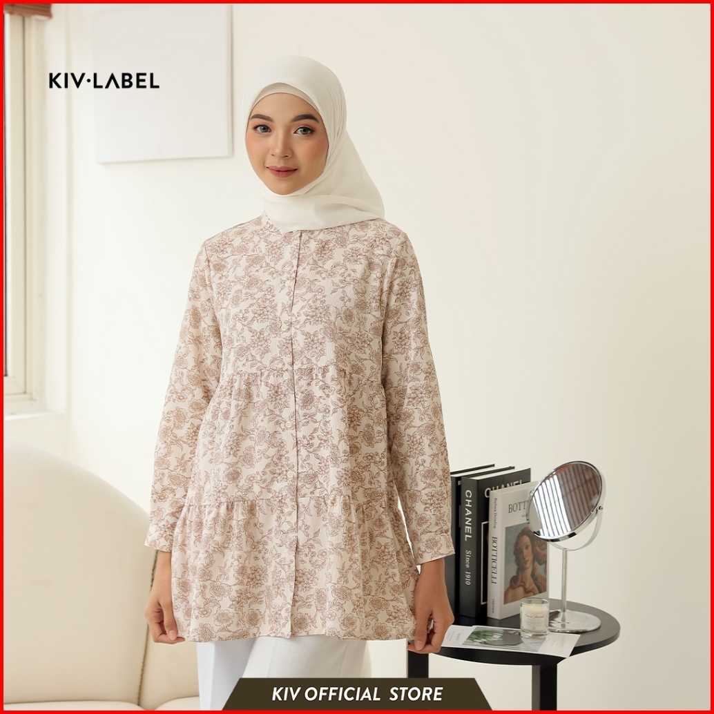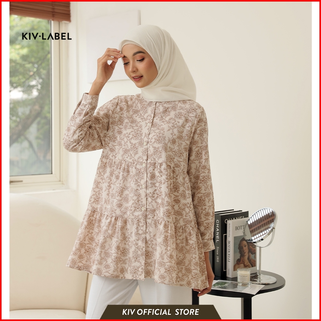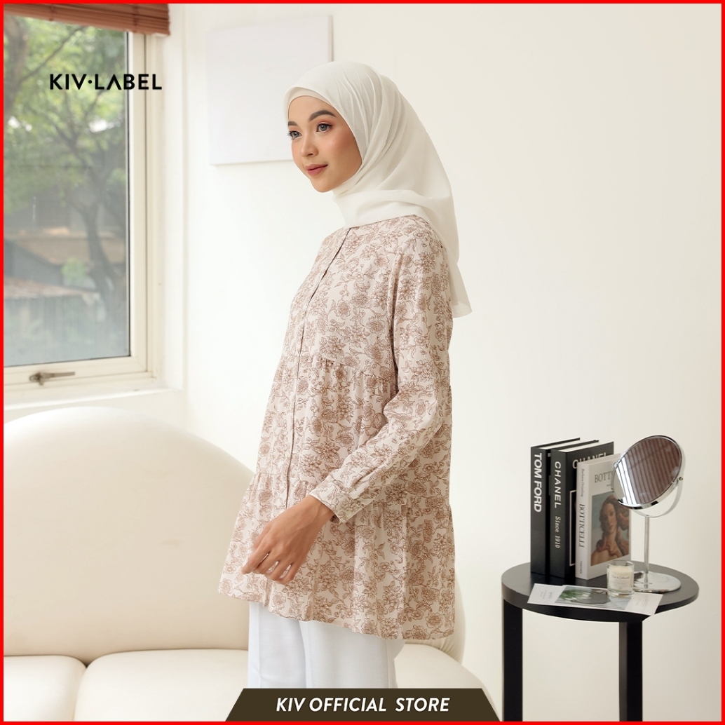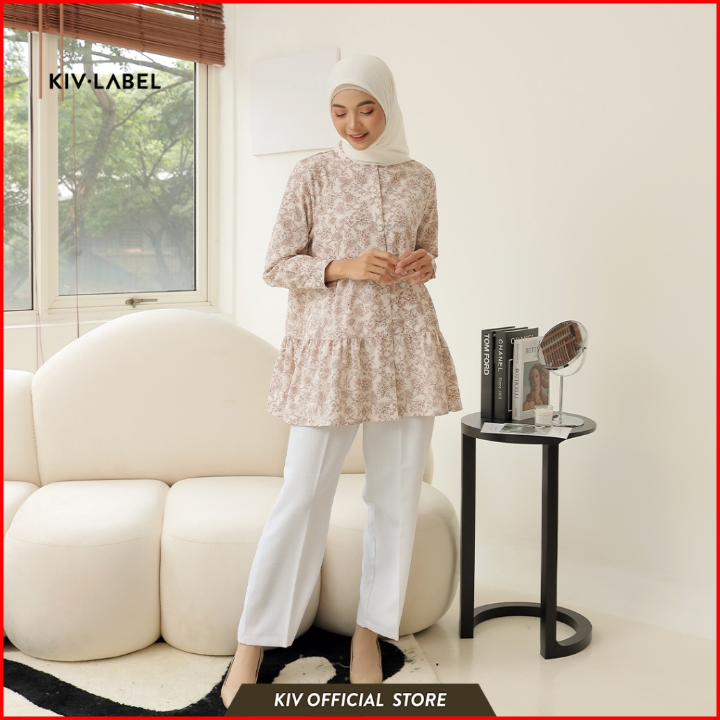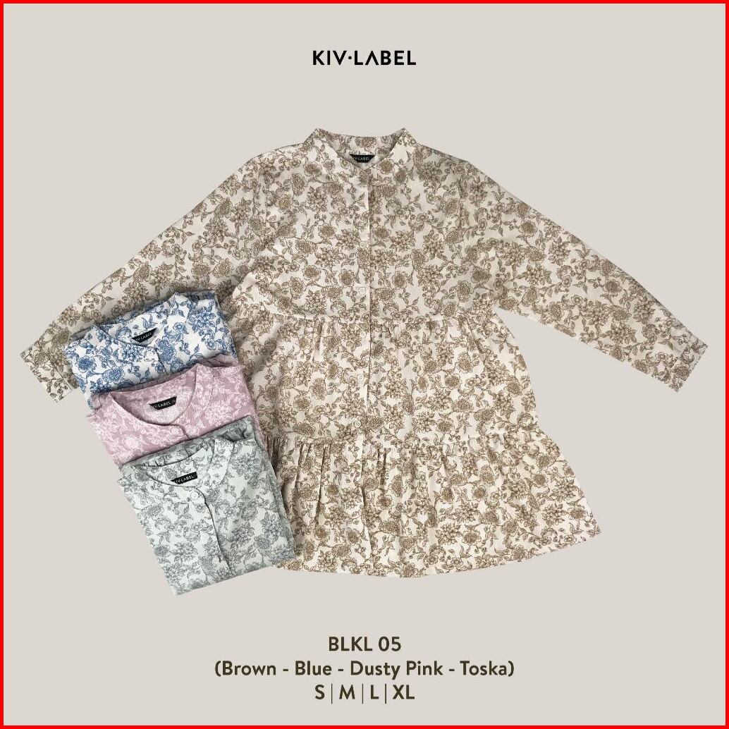 Kiv Label Blouse Tunik Wanita Model Ruffle Motif Bunga Blkl 05
