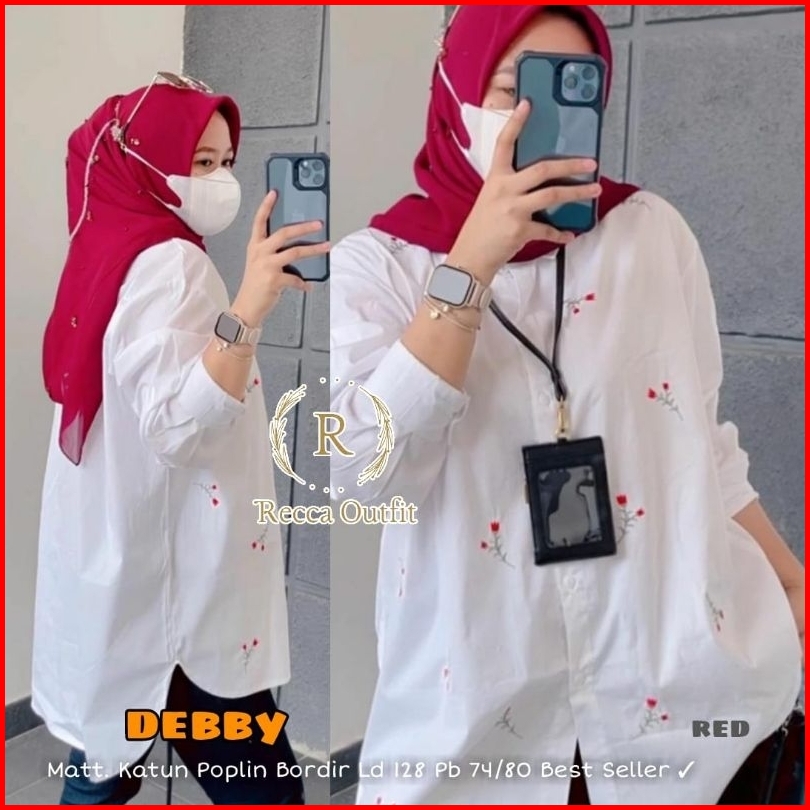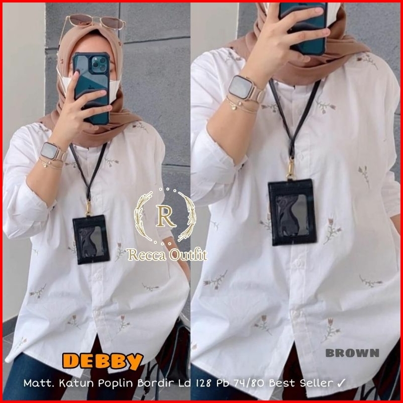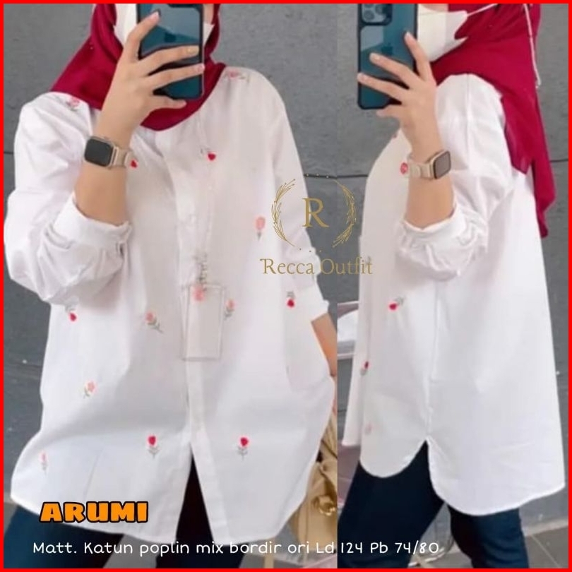 Kemeja Katun Motif Bunga Bordir Kekinian Atasan Wanita Lengan Panjang Arumi
