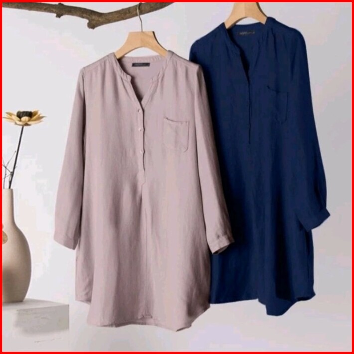 Kendra Tunik Atasan Wanita Muslimah Terbaru 2024 Jumbo L Xl Xxl Katun Rayon Twill V-neck