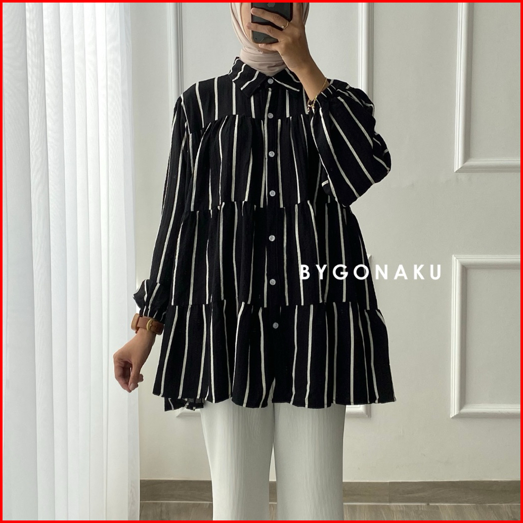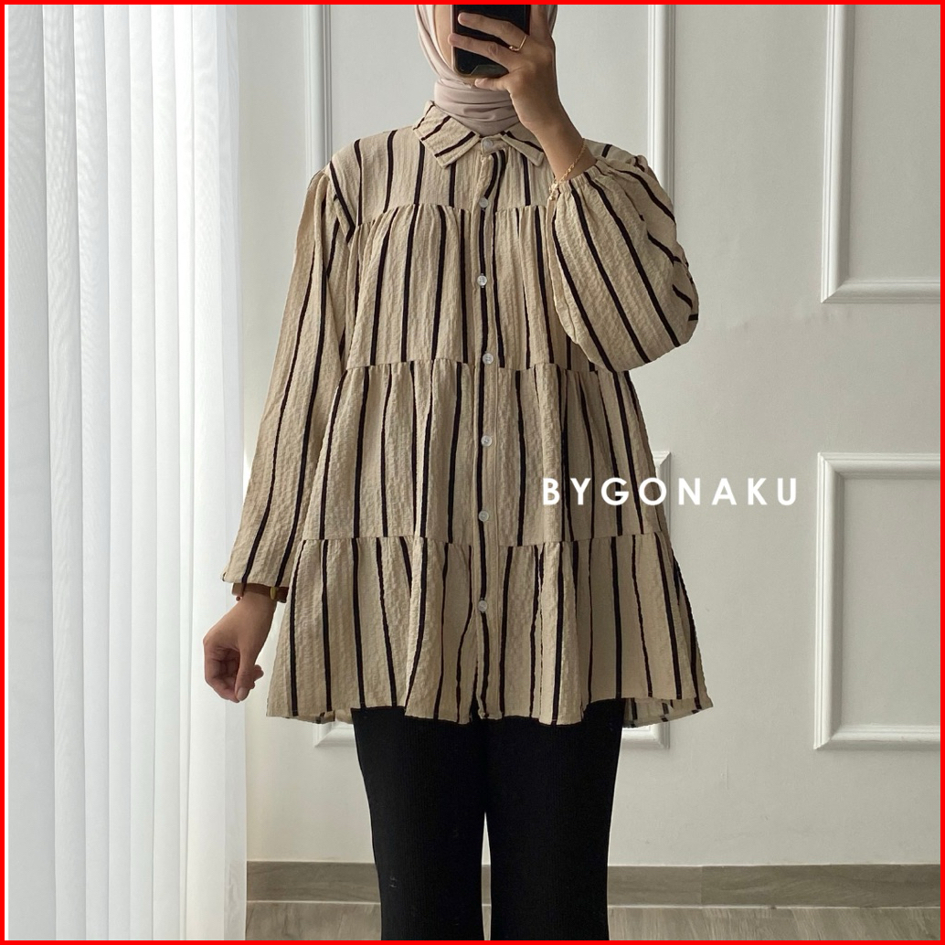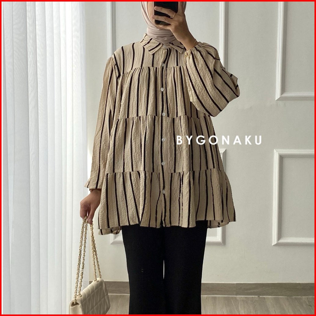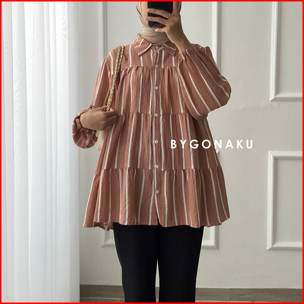 Gonaku Jasmine Tunic Oversized Shirt Kemeja Rempel Busui Bumil Friendly Tunik Jumbo Full Kancing Atasan Kerja Wanita Baj