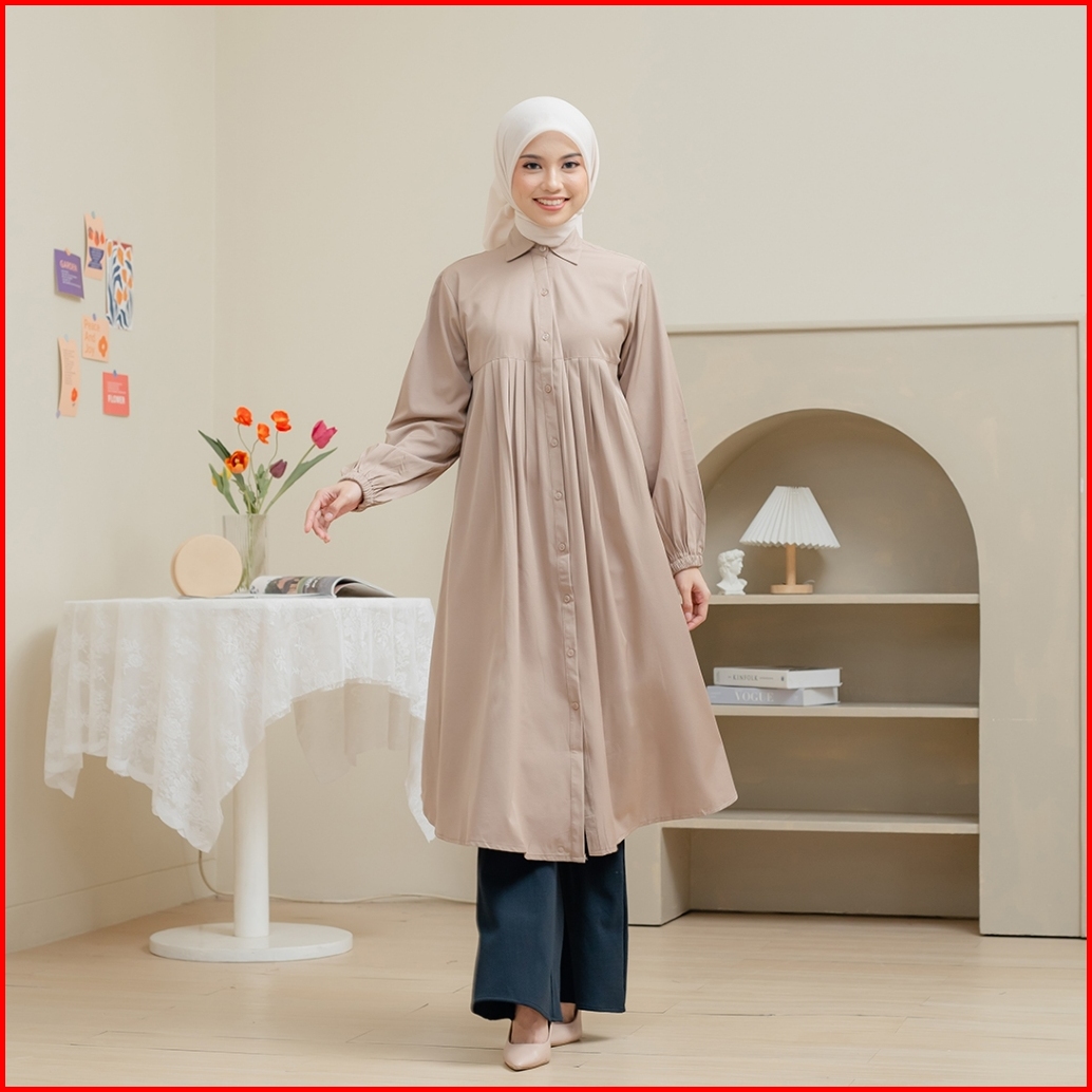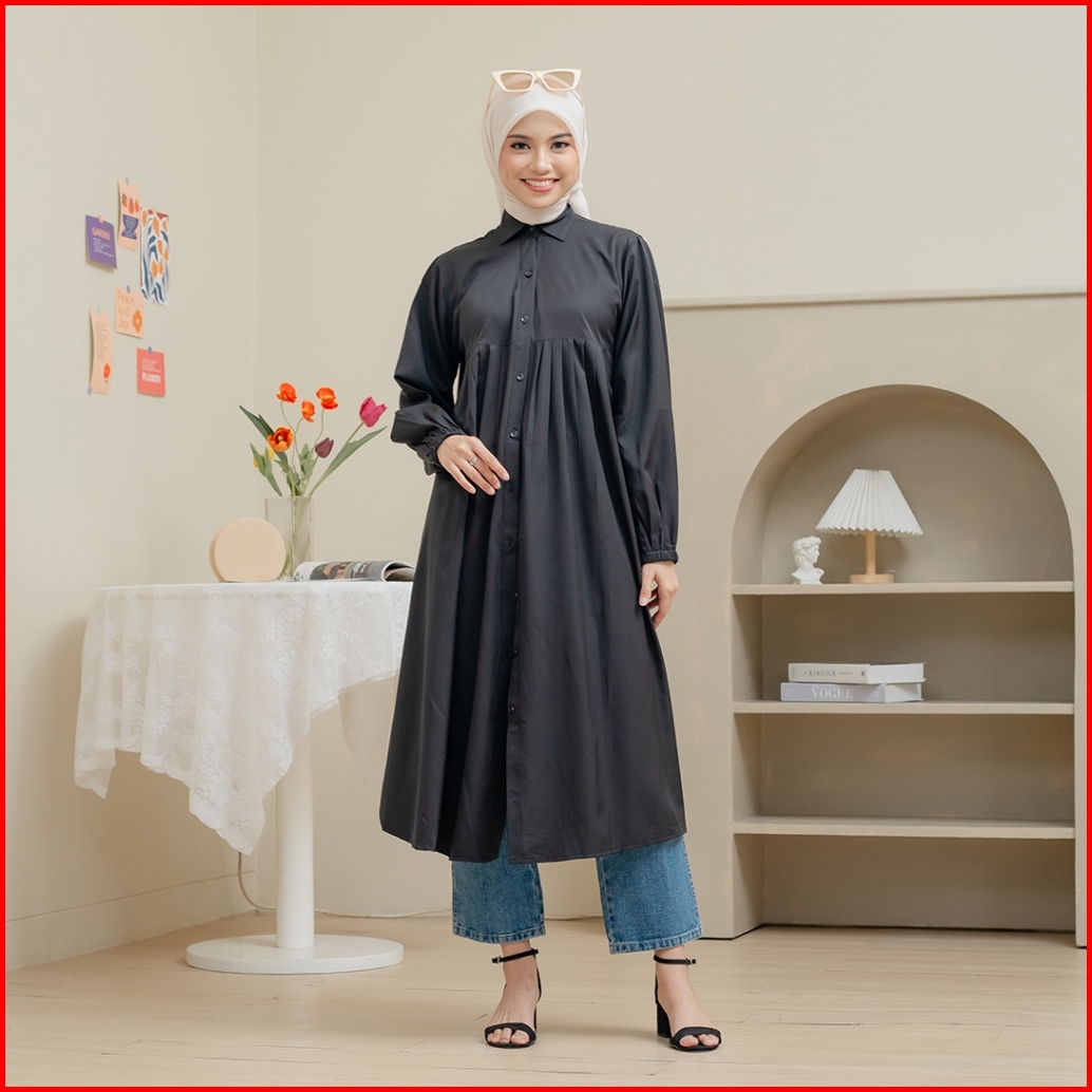Rietta Basic Premium Tunik B5010193 Tunik Katun Dress Midi Polos Wanita Atasan Tunik Dress Korea
