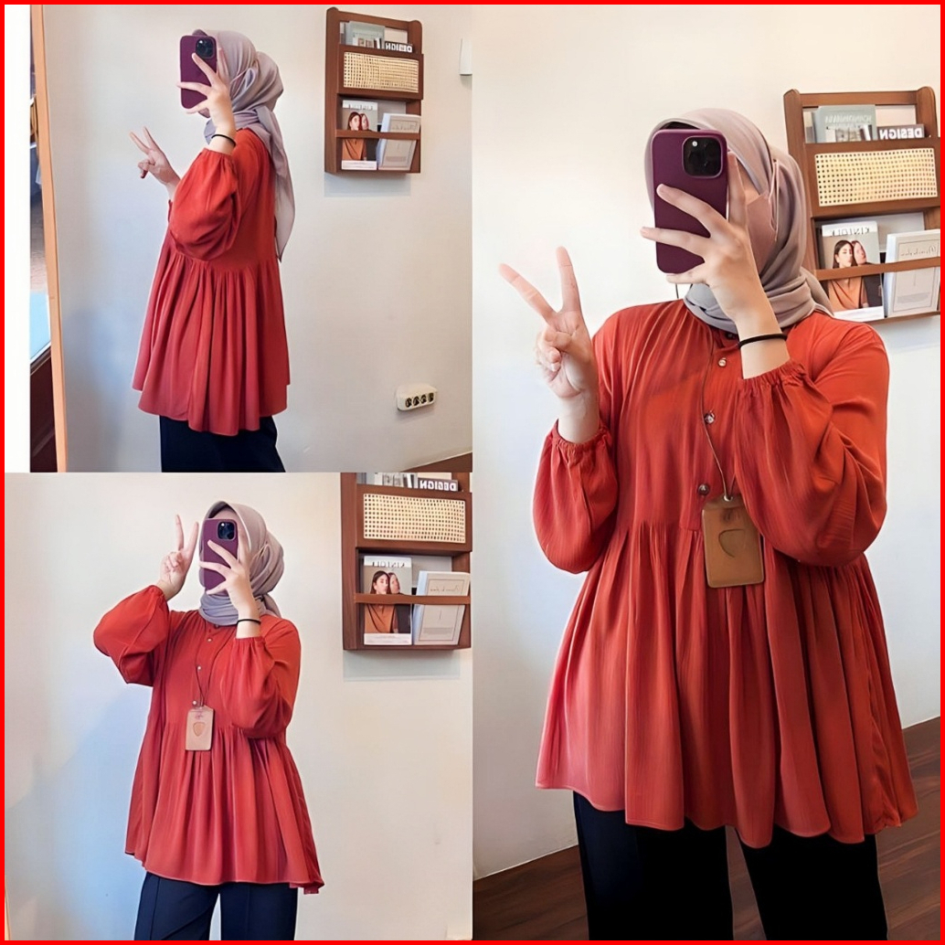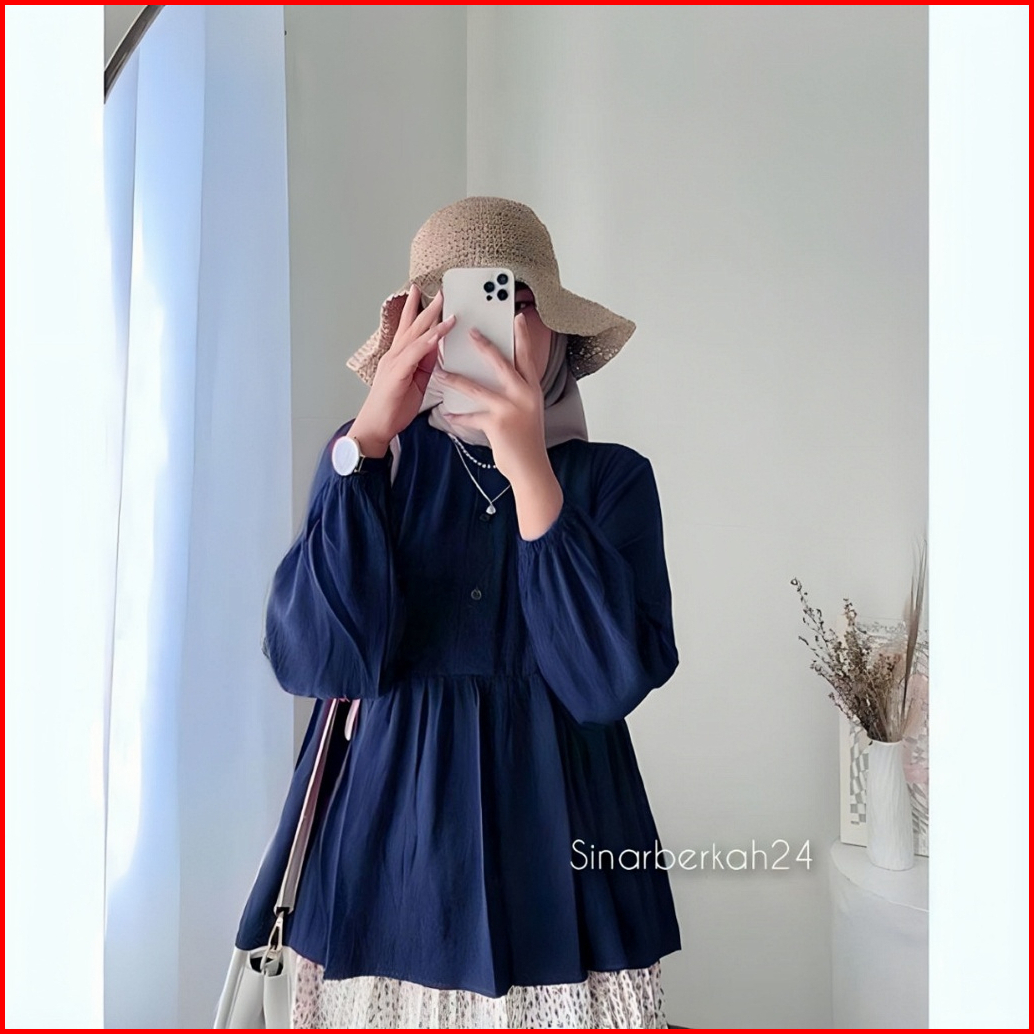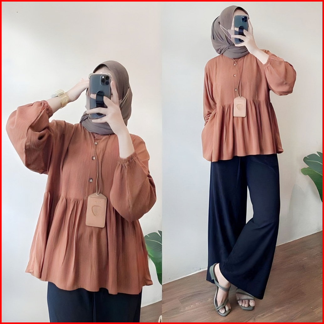 Saguna Blouse Wanita Kekinian Lengan Panjang Rampel Depan Baju Aasan Tunik Wanita Korea Terbaru