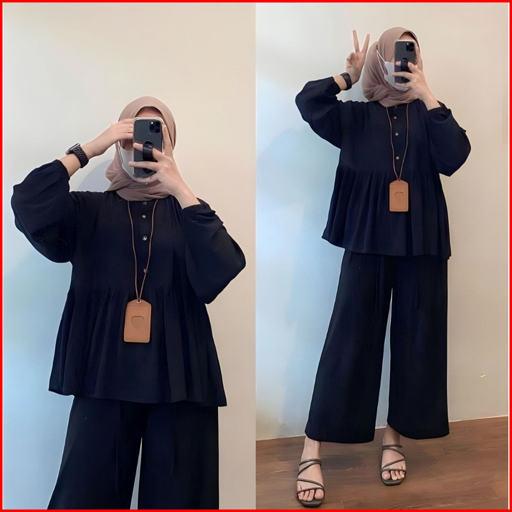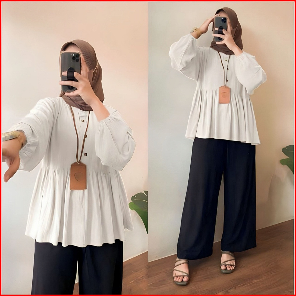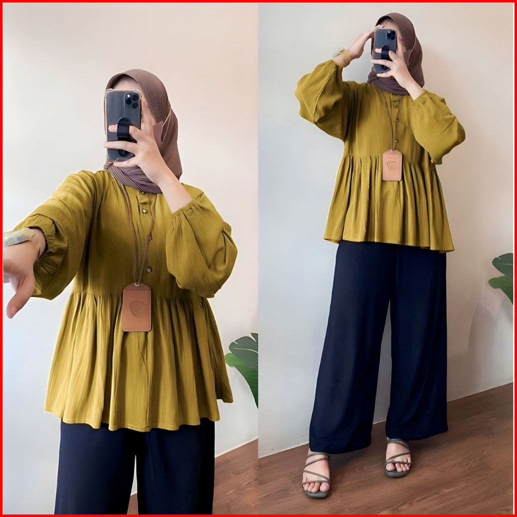 Saguna Blouse Wanita Kekinian Lengan Panjang Rampel Depan Baju Aasan Tunik Wanita Korea Terbaru