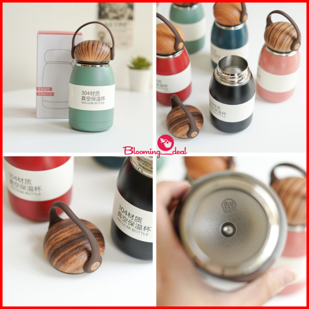 Termos Mini Premium Stainless Steel 304 Tutup Motif Kayu 300ml Yt2-582