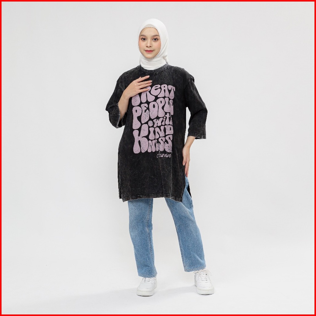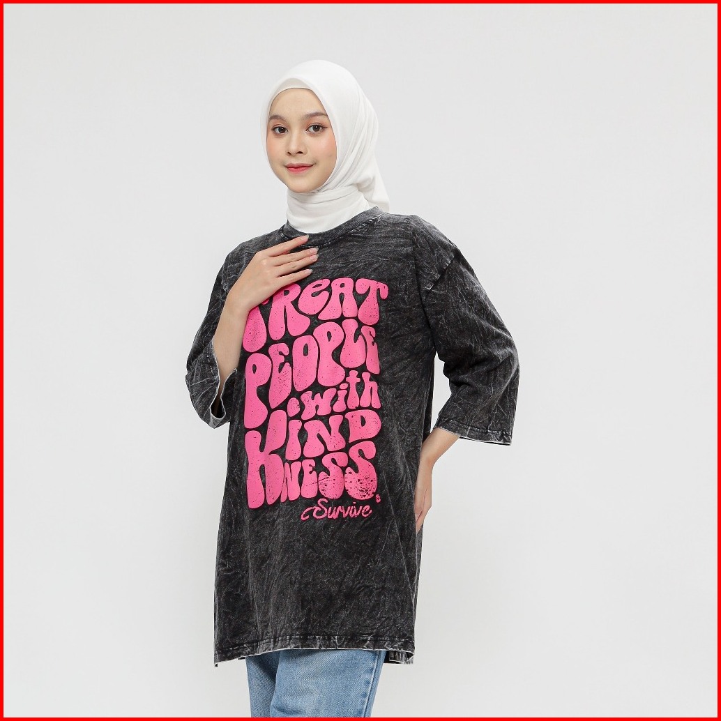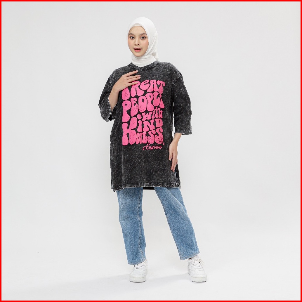 Survive Tunik Kaos Oversize Wanita Lengan 7 8 Treat People
