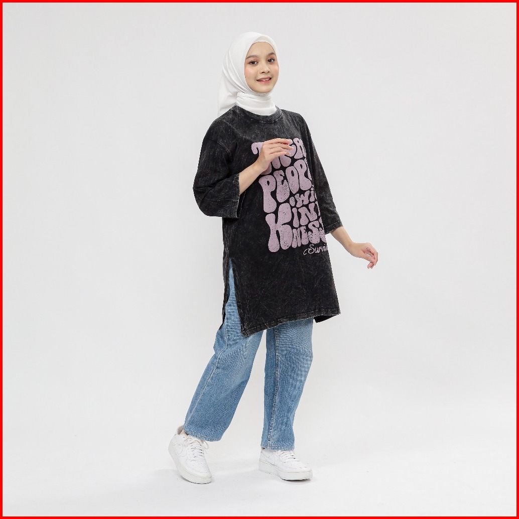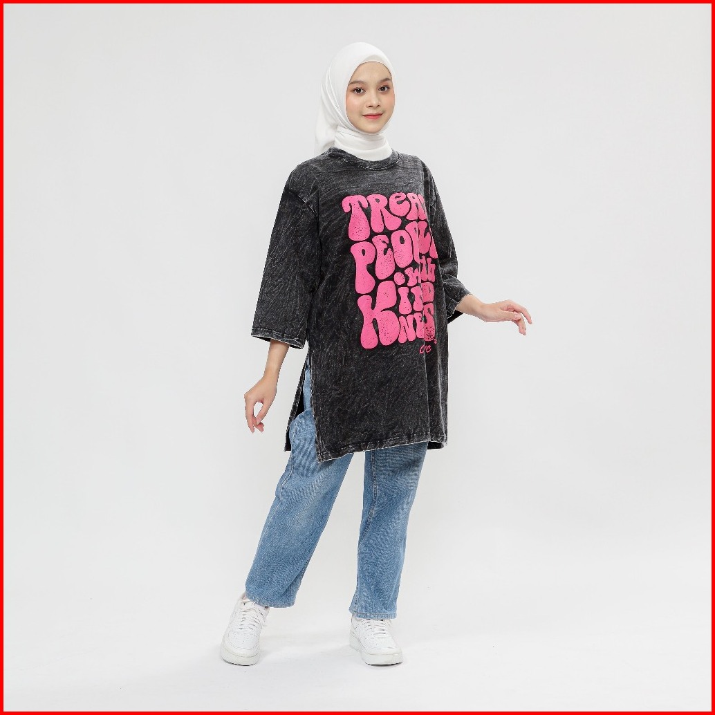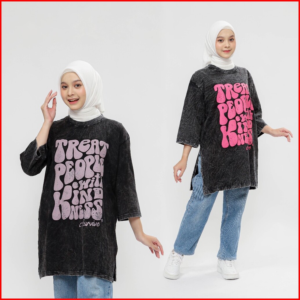 Survive Tunik Kaos Oversize Wanita Lengan 7 8 Treat People