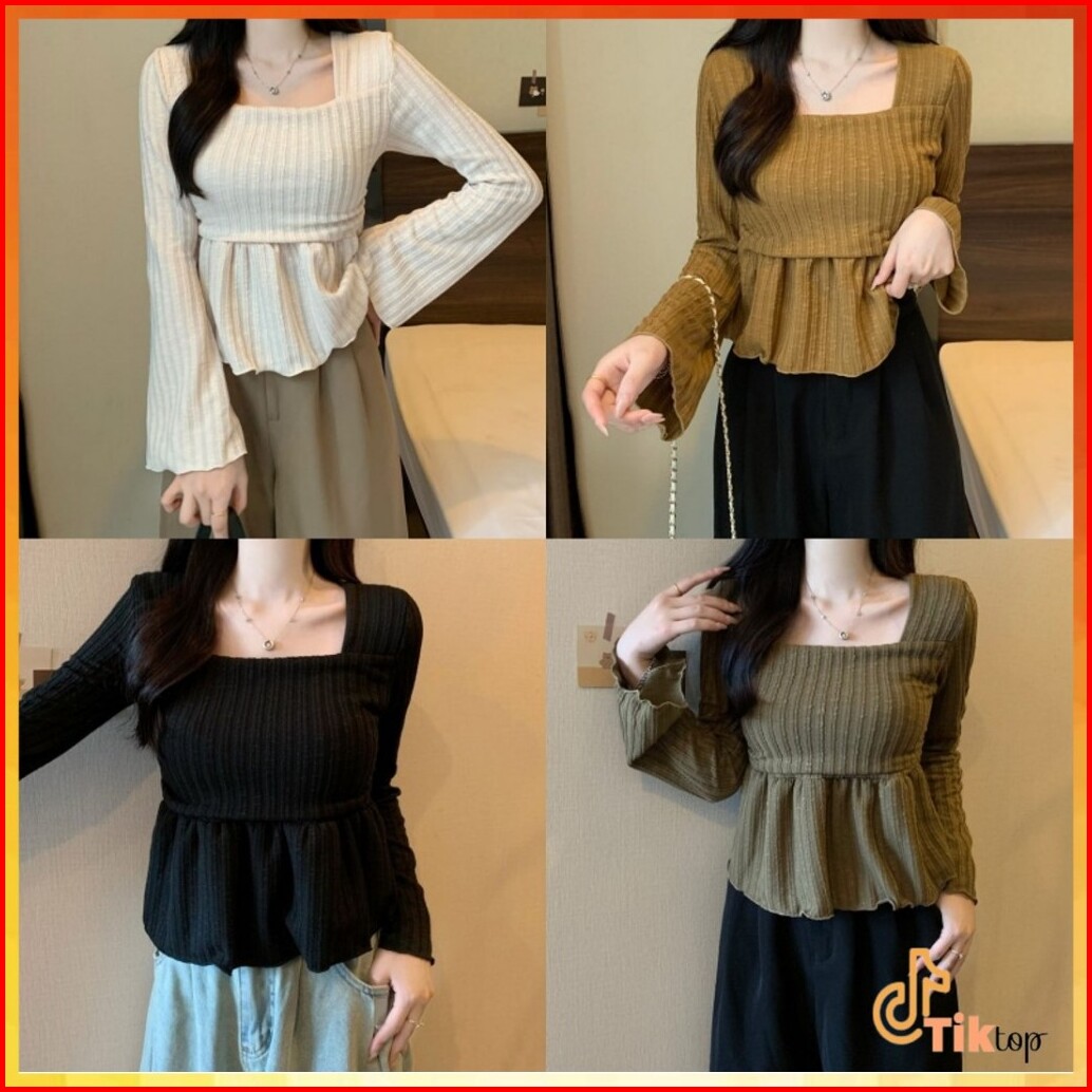 Tiktop Pakaian Wanita Inner Rajut Premium Lengan Panjang Import Bahan Adem Baju Korean Style Bj-6056