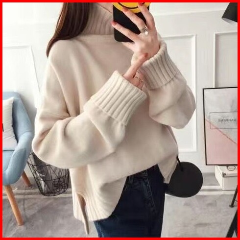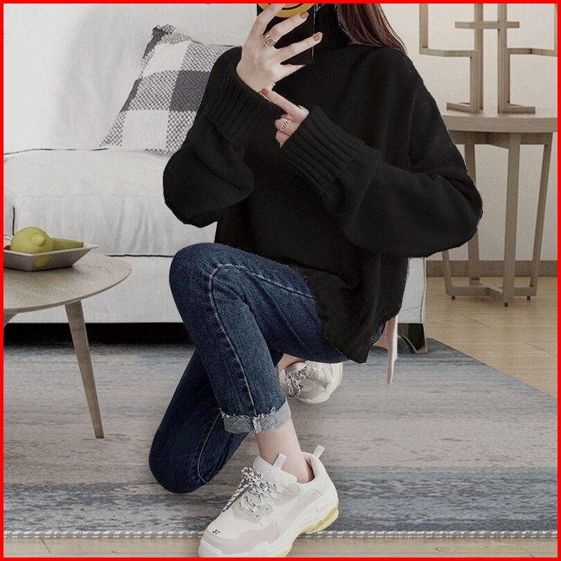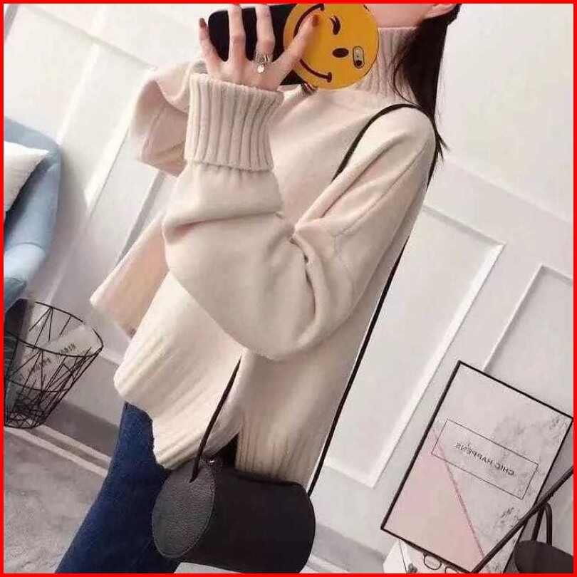 Harumi Woman Winter Sweater Top Highneck Knit Wool Blend Switer Rajut Wanita Musim Dingin
