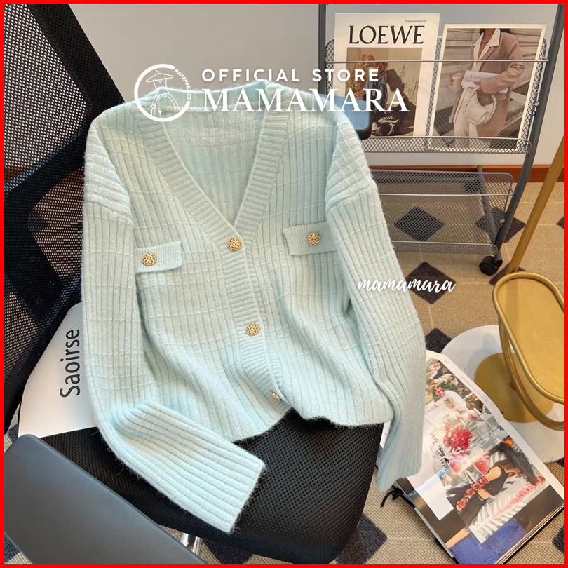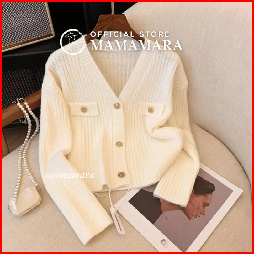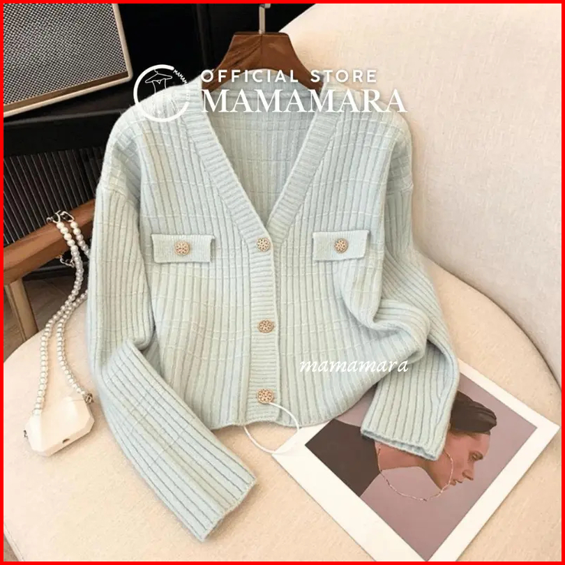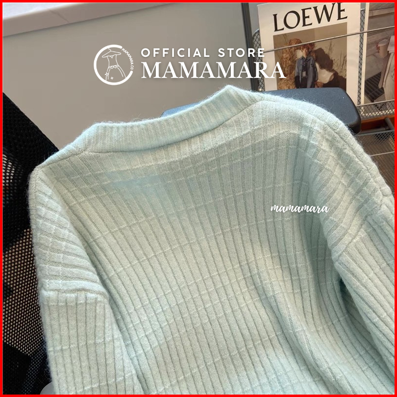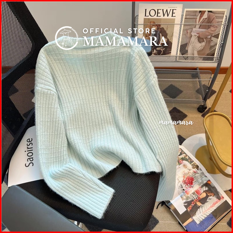 Mamamara - Atasan Rajut Wanita Pastel Lengan Panjang Simple Classy Motif Balok