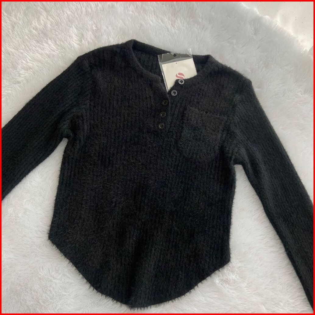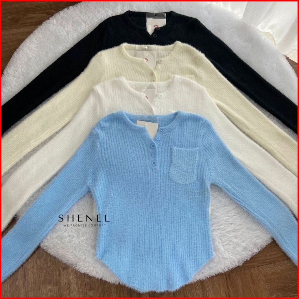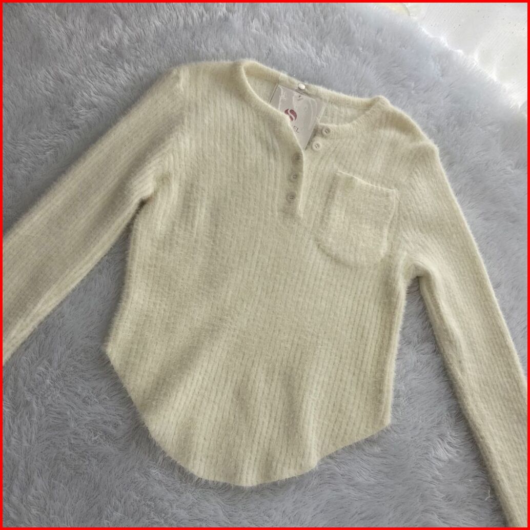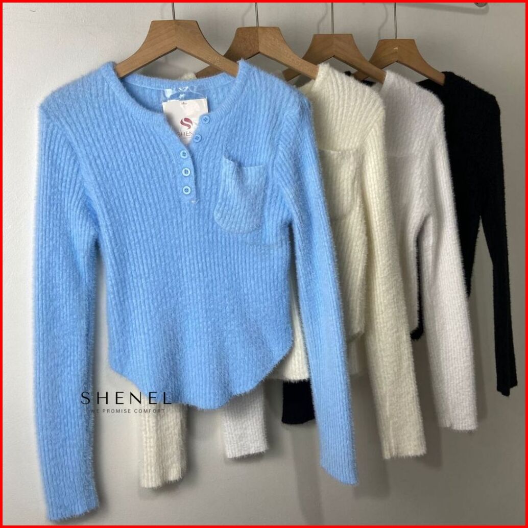Shenel Olla Furknit Atasan Bulu Oval Shape Baju Rajut Bulu Musim Dingin Atasan Rajut Bulu Lembut Rajutan Stretch