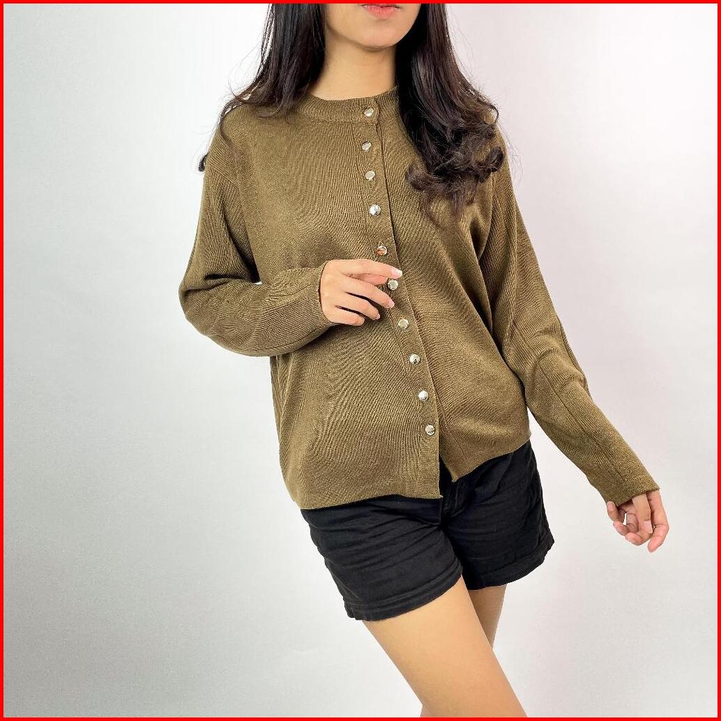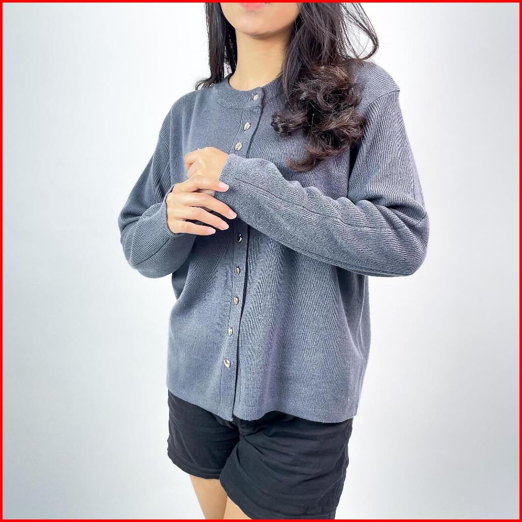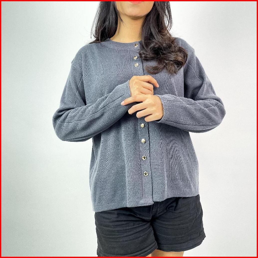 Alzi Kannara Knitwear Cardigan Premium Atasan Wanita Tangan Panjang Garis Aesthetik Baju Rajut Wanita Baju Rajut Premium