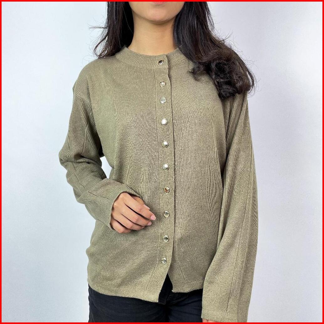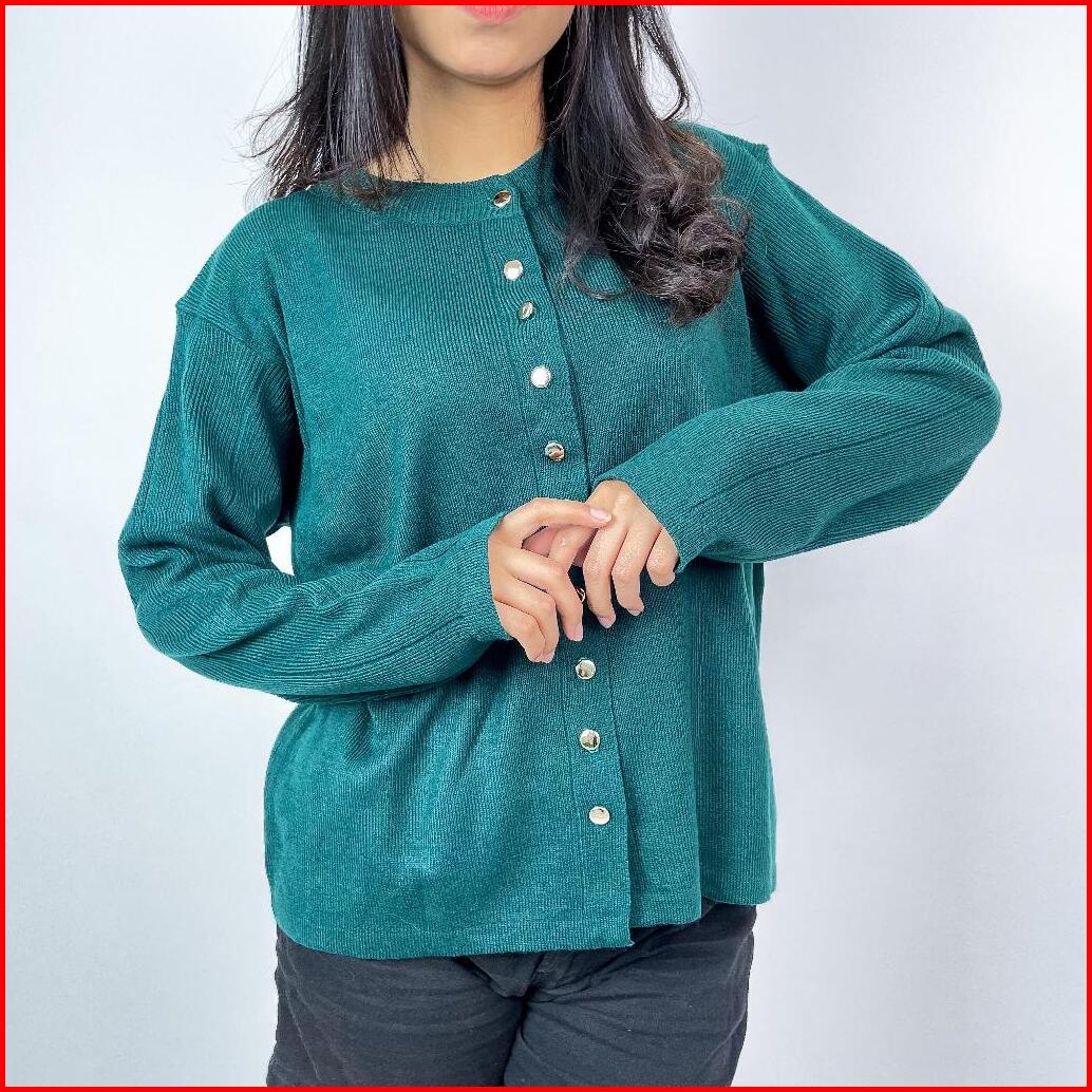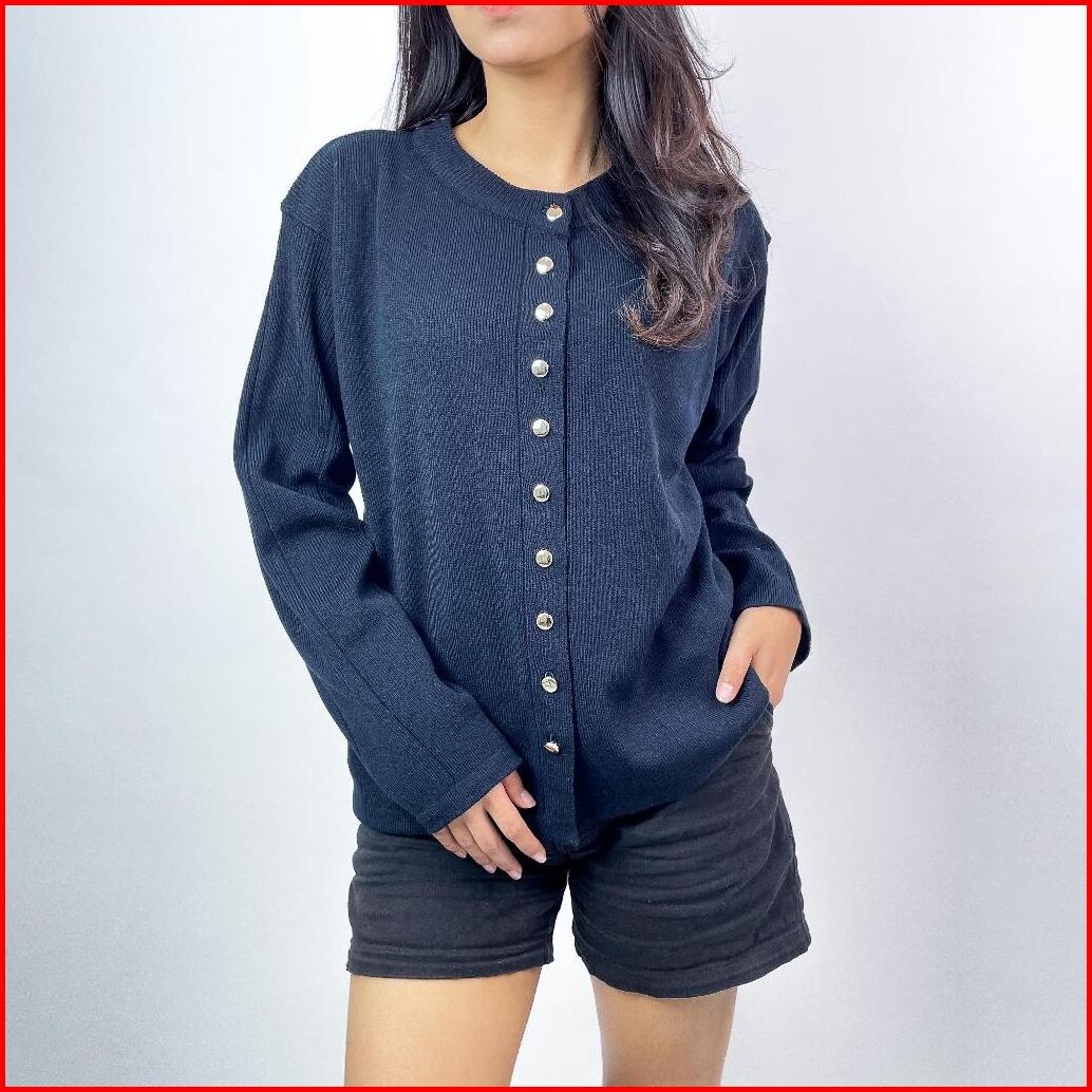 Alzi Kannara Knitwear Cardigan Premium Atasan Wanita Tangan Panjang Garis Aesthetik Baju Rajut Wanita Baju Rajut Premium