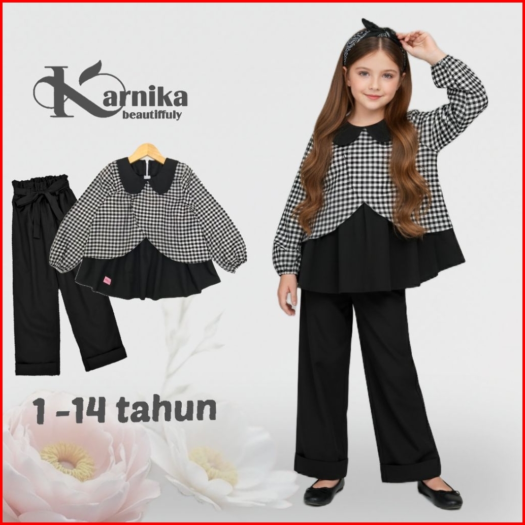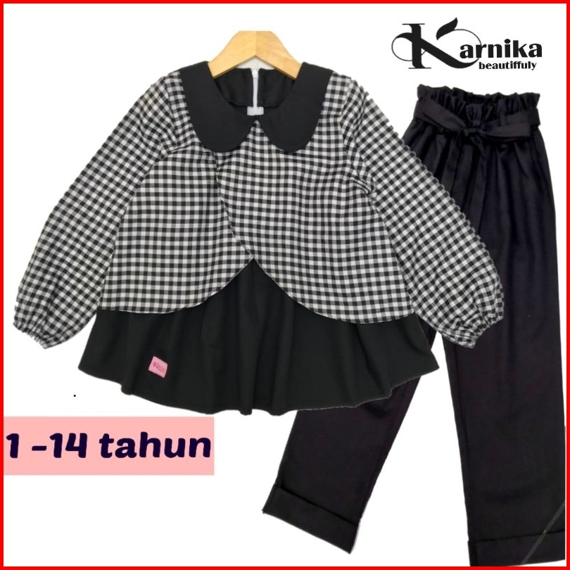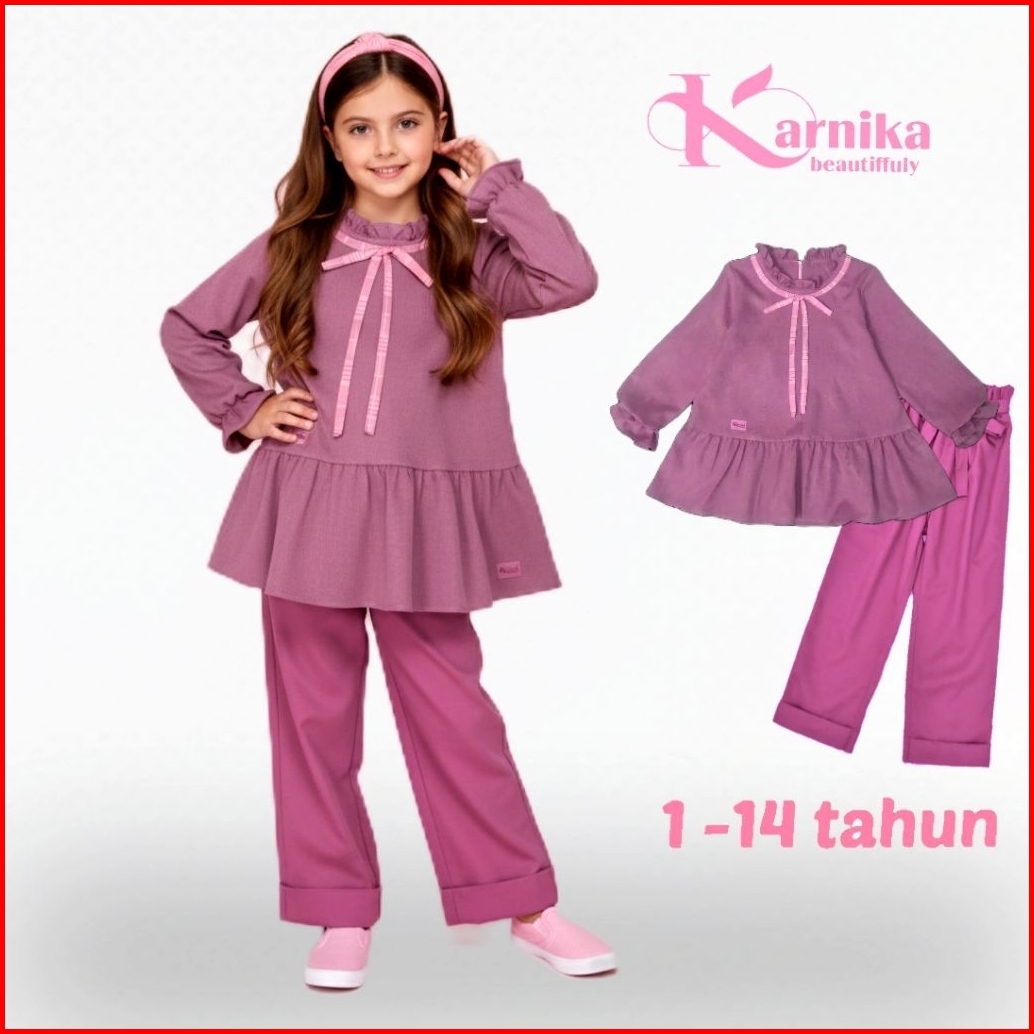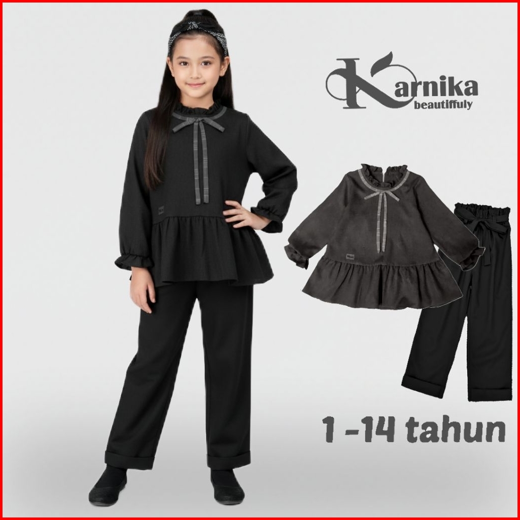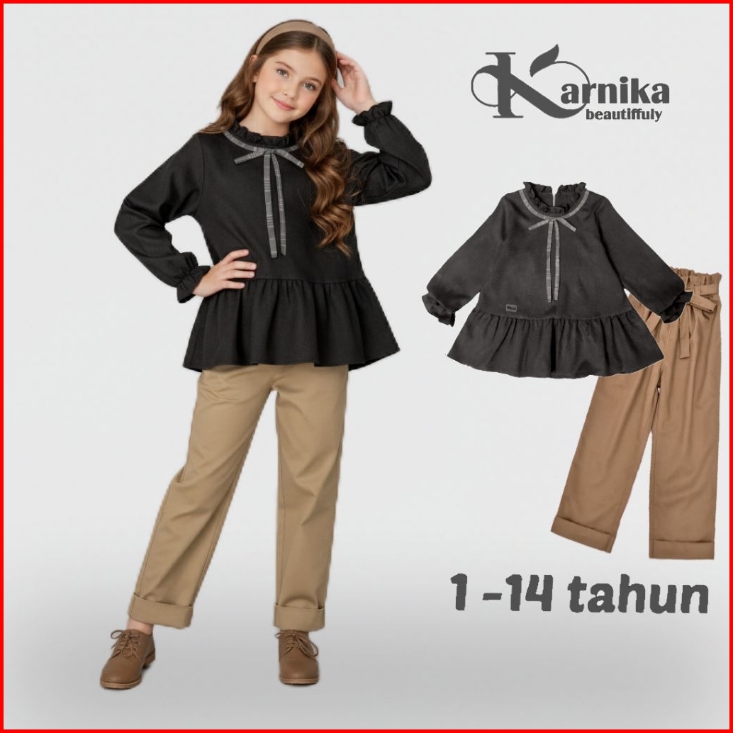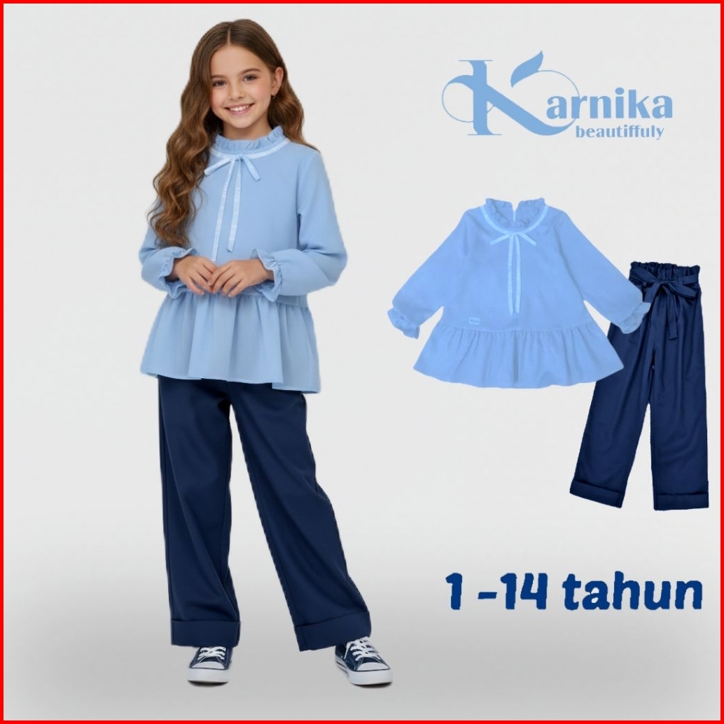 Karnika Setelan Baju Anak Perempuan 1-14 Tahun Korean Style Blouse Set Celana Panjang Terbaru