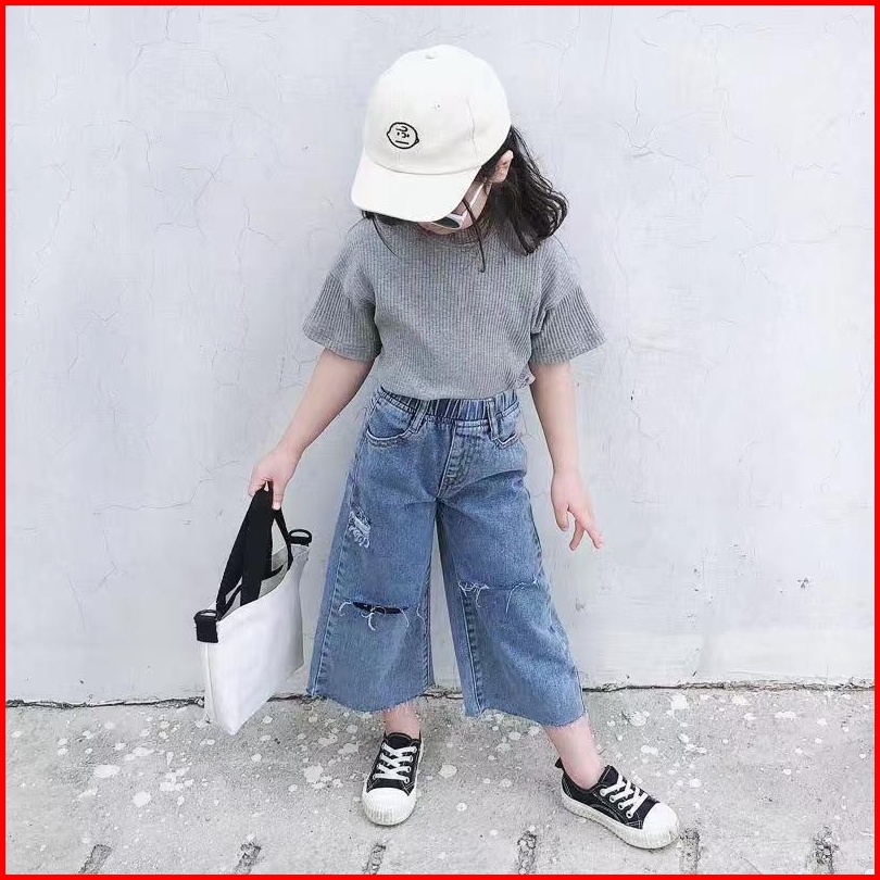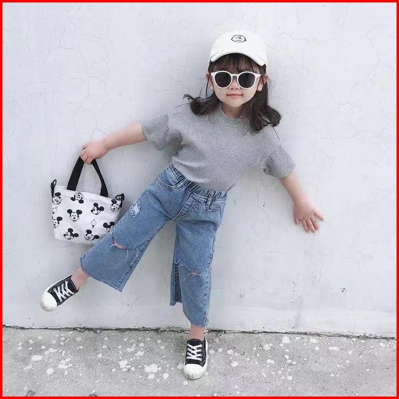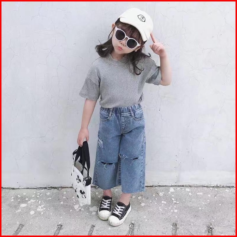 One Set Anak Perempuan Set Anak Cewek Setelan Anak Perempuan T-shirt Bahan Katun Celana Soft Jeans Baju Anak Clothes Ana