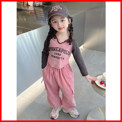 Kf Cat Setelan Baju Hoddie Anak Perempuan Lengan Panjang Bahan Katun Celana Kargo Usia 1-4 Tahun