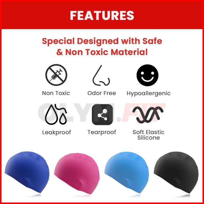 Olym.fit High Quality Topi Renang Dewasa Rambut Panjang Silicone Swim Swimming Cap Penutup Kepala Renang All Size