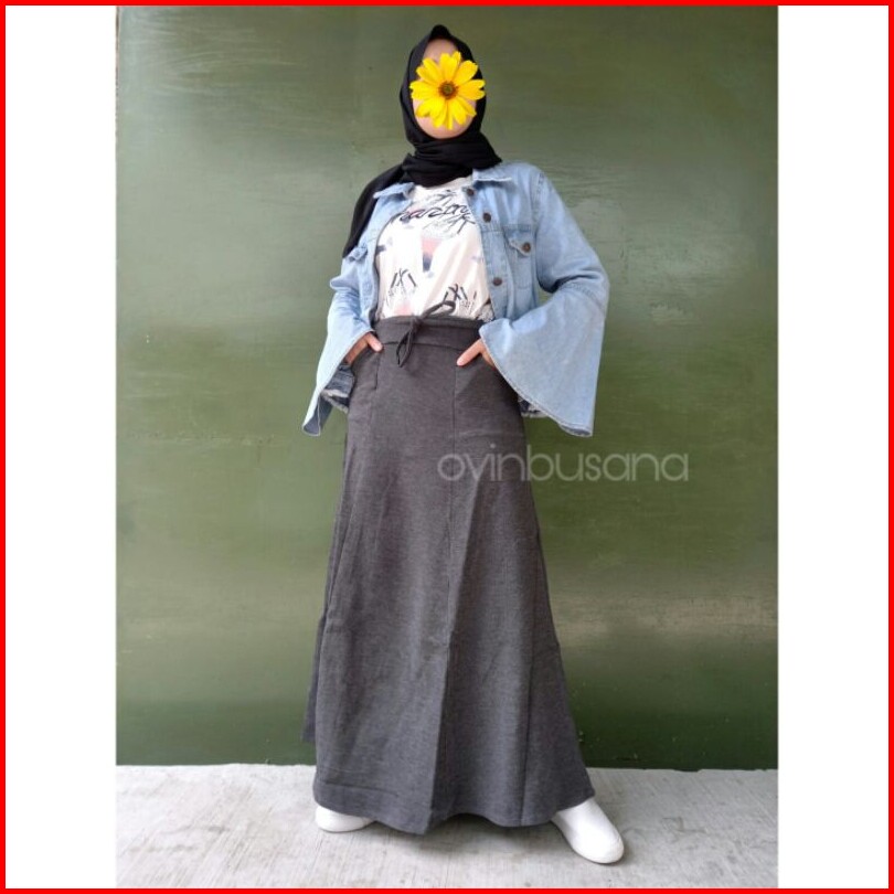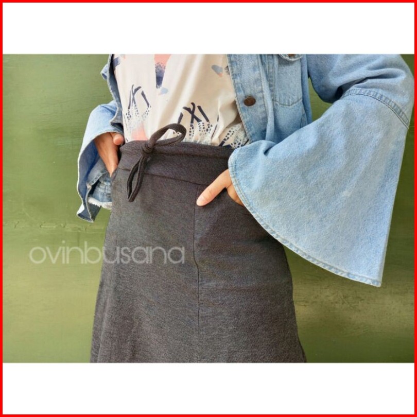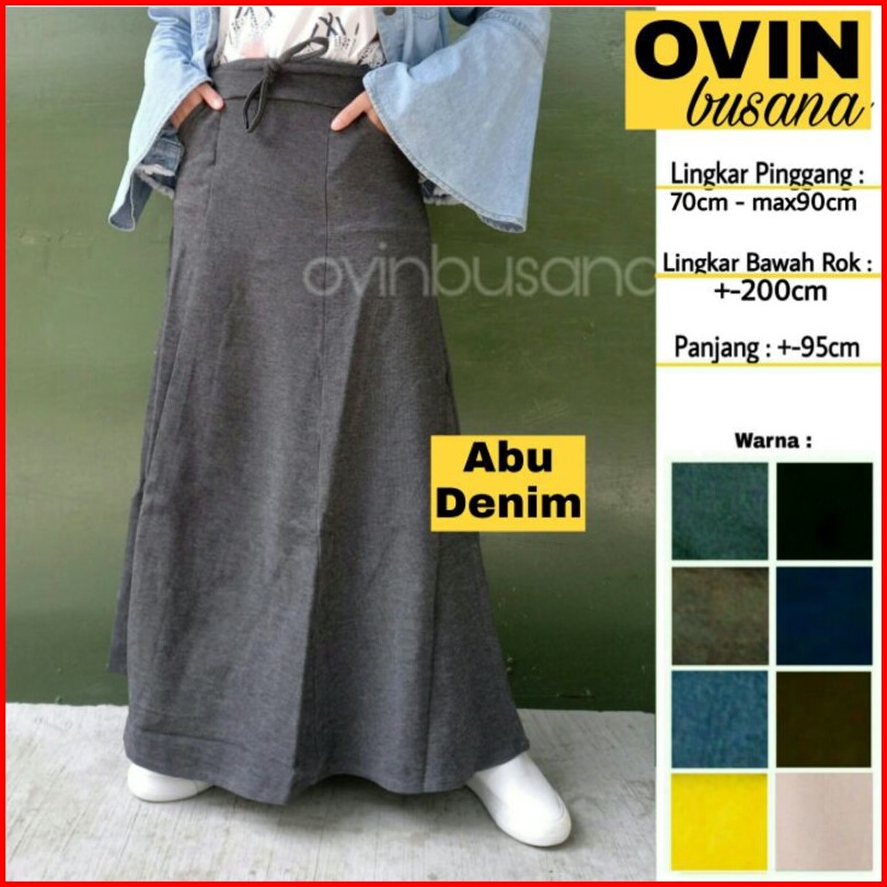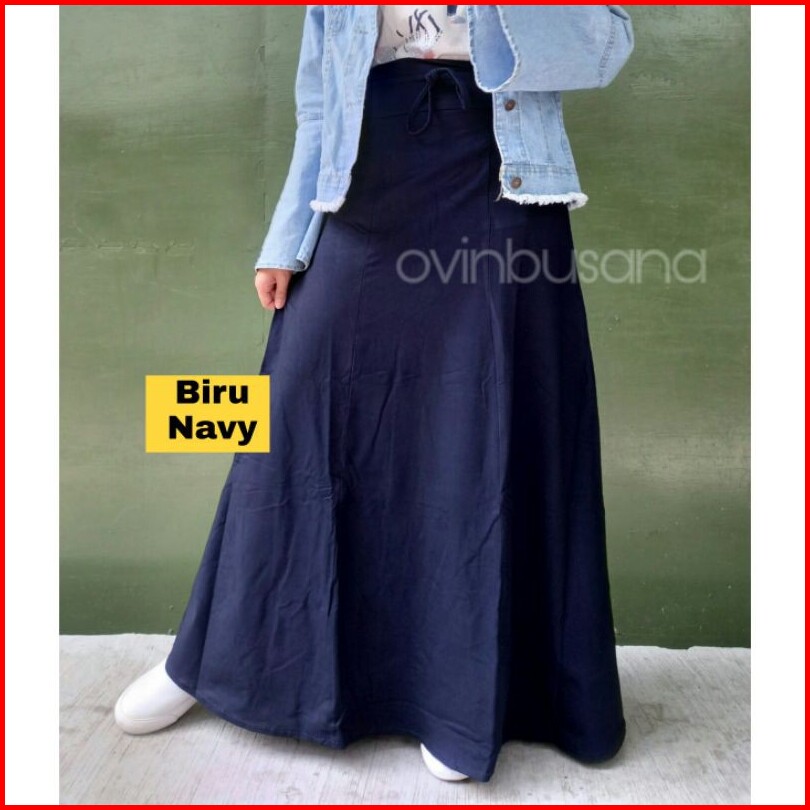 Rok Tali Denim Polos Basic Skirt - Bahan Premium Denim Stretch Panjang