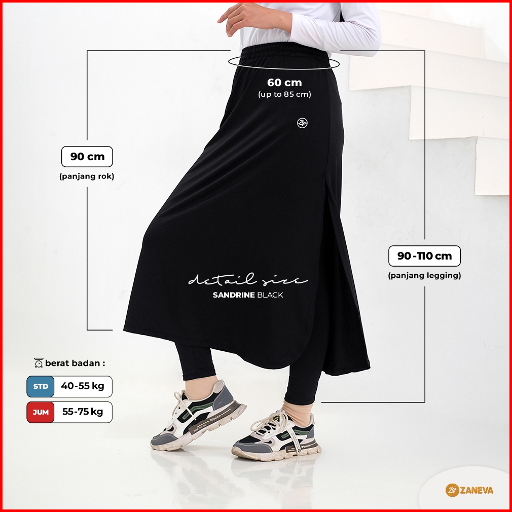 Zaneva Sportwear Ori Sandrine Legging Rok Ll Leggingrok Panjang Muslimah Stylish Nyaman Sopan