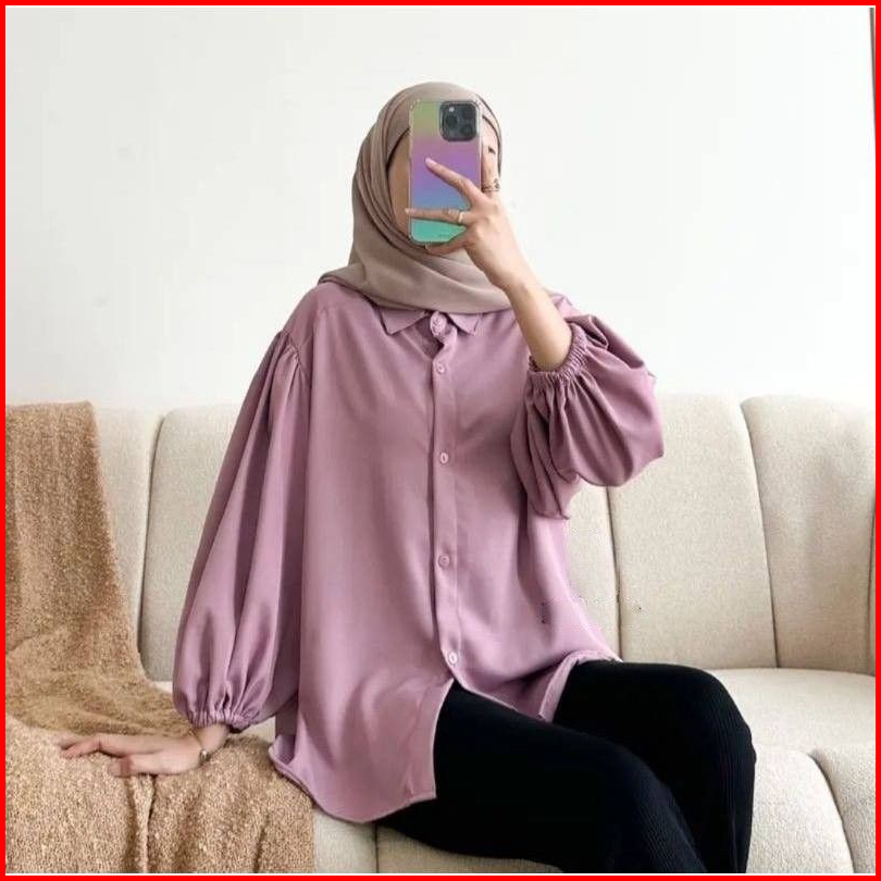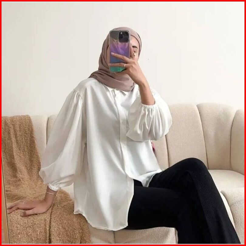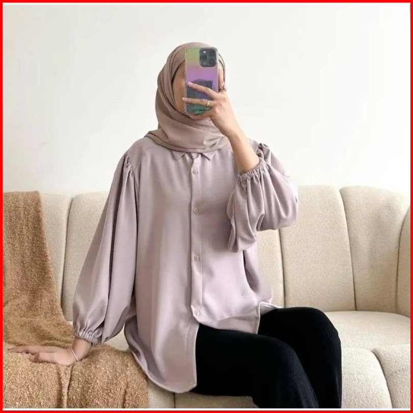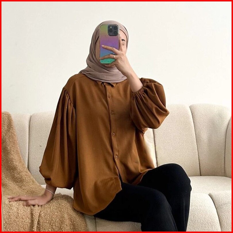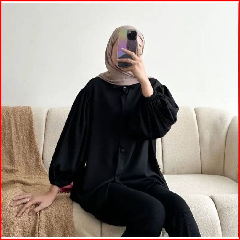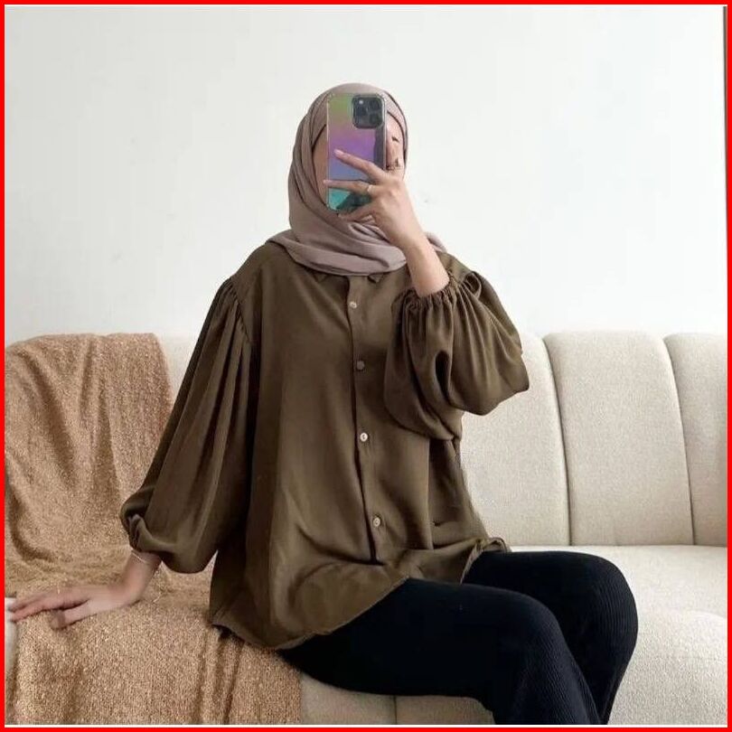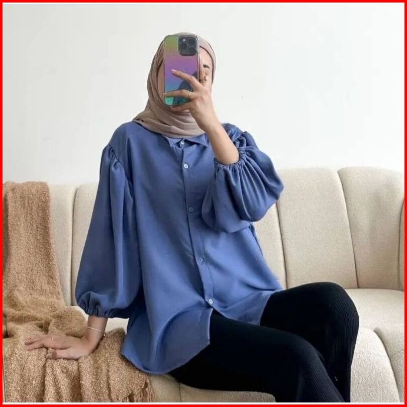 Zea Blouse Polos Lengan Balon Atasan Kemeja Wanita Tangan Puffy Shakila Twill Korean Style
