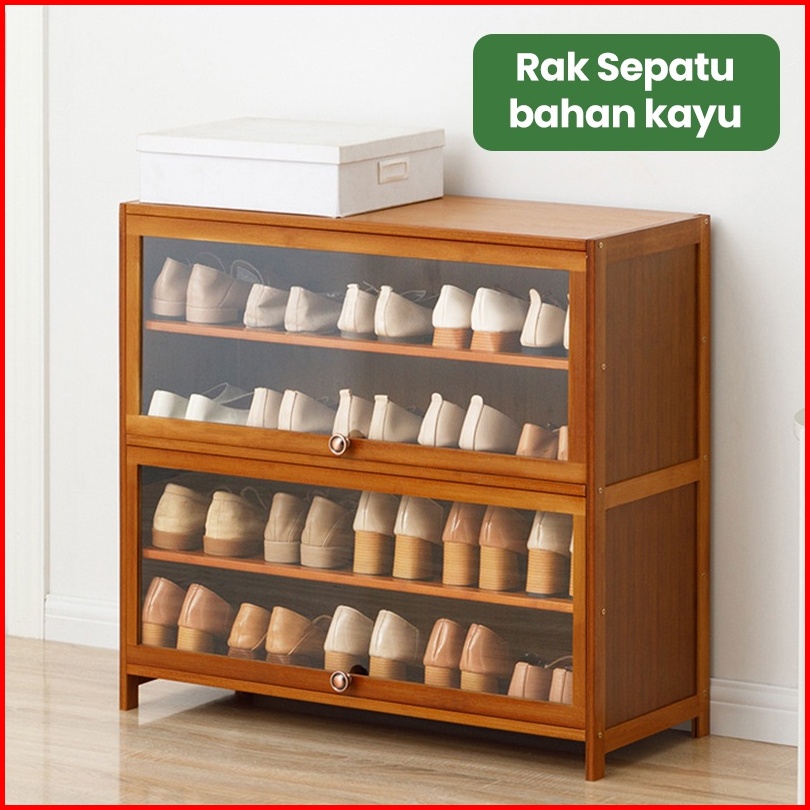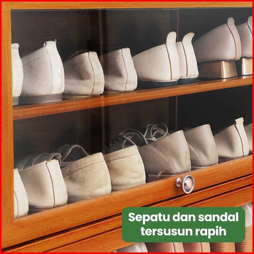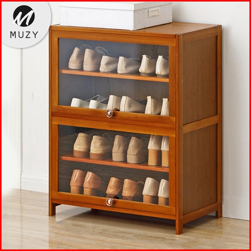 Muzy Lemari Sepatu Kayu Rak Sepatu Kayu Anti Debu Lemari Sendal Susun Minimalis Tempat Penyimpanan Sepatu Sandal Rak Buk