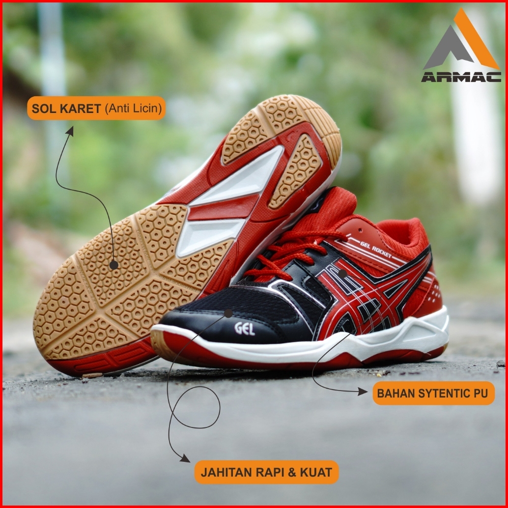 Sepatu Badminton Voli Pria Gel Rocket New Edition Size 39-43 Star