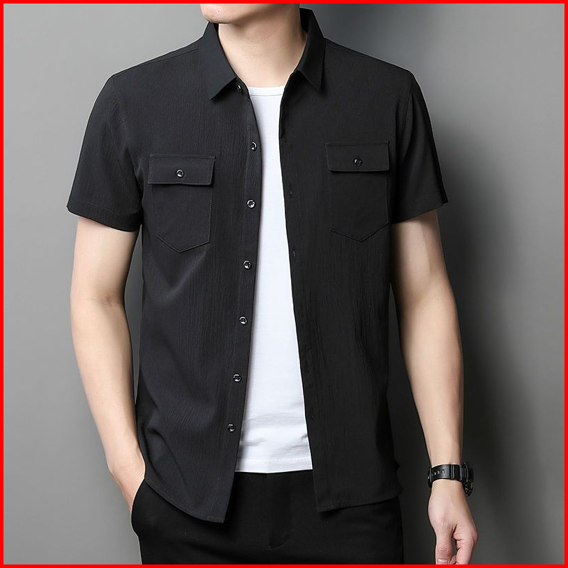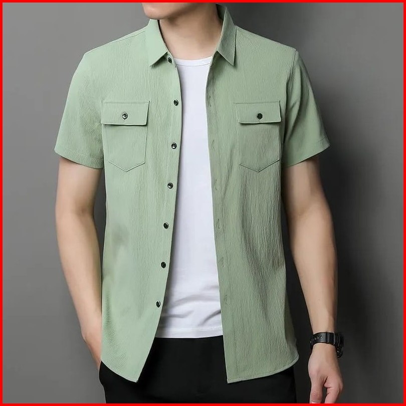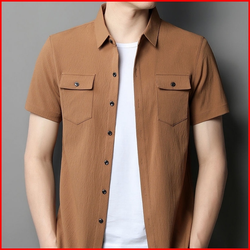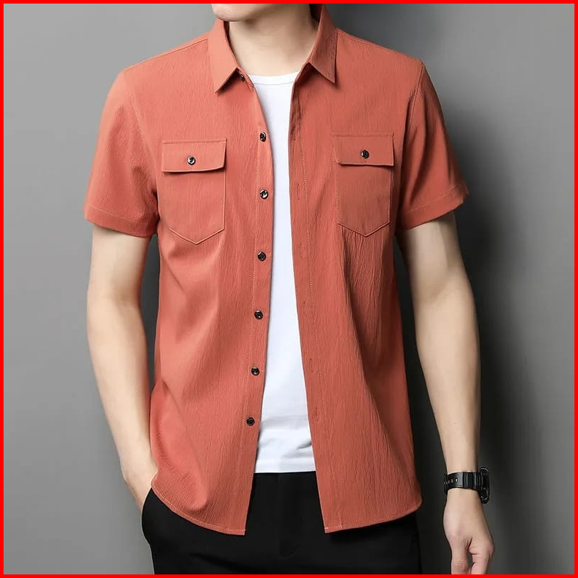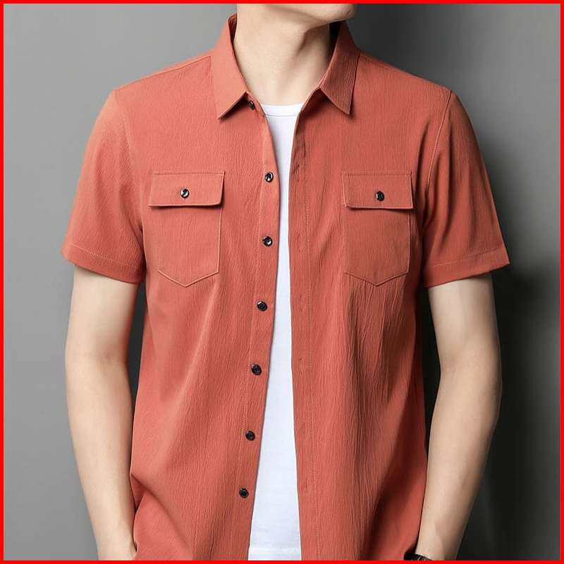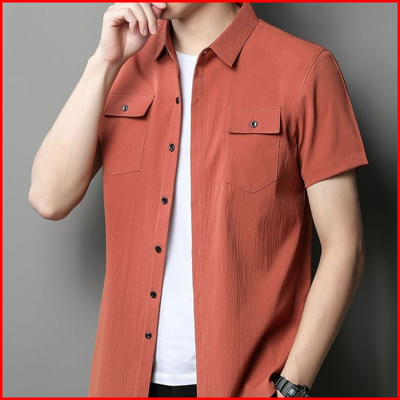 Streetwear - Baju Kemeja Pria Slimfit Lengan Pendek Warna Teracota