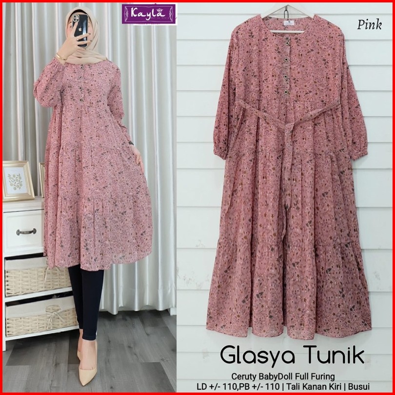Mufash - Priyanka Tunik Atasan Ceruty Premium Motif Bunga By Mumu Fashion Glasya Tunik