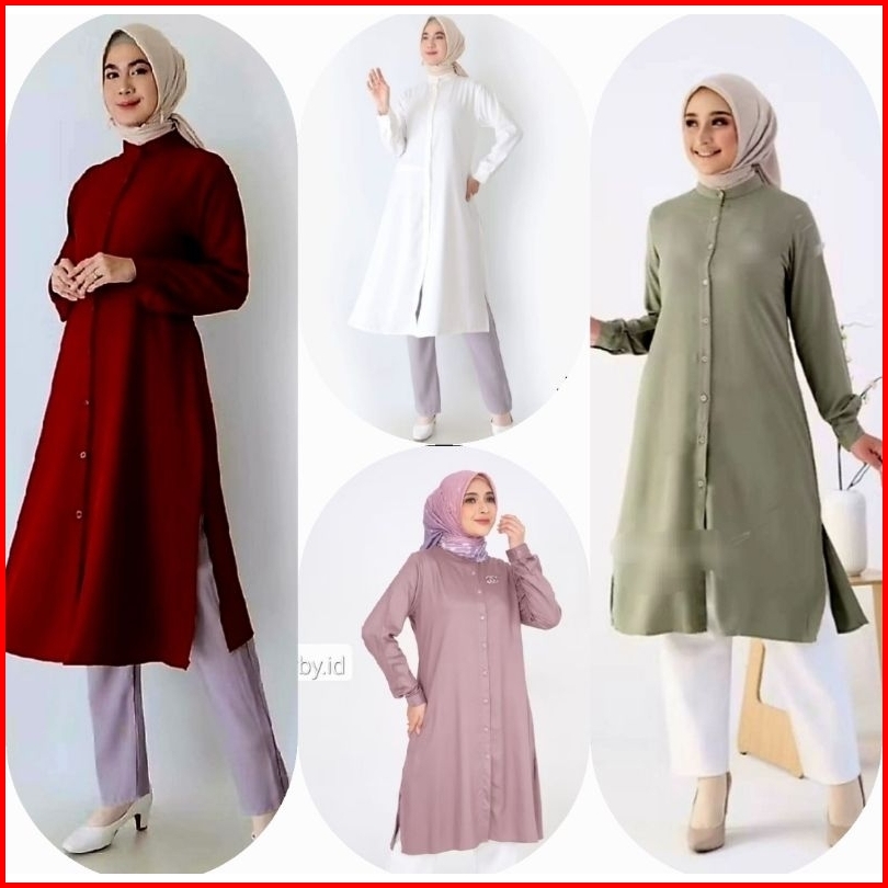 Niby Tunik Wanita Allsize Soft Pastel Terbaru Niby Tunik Wanita Polos Full Kancing Elegan 2025