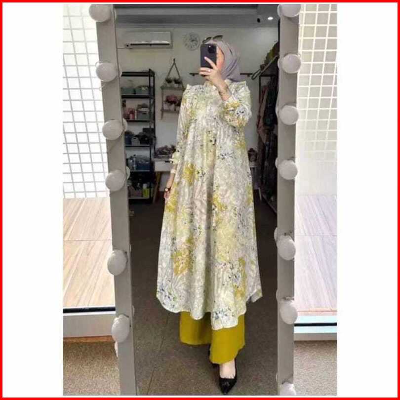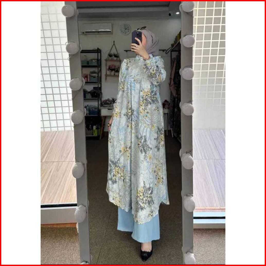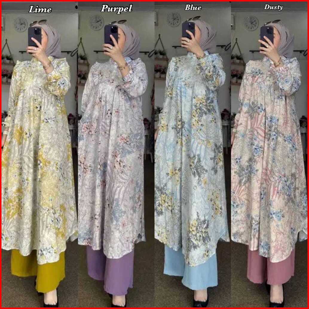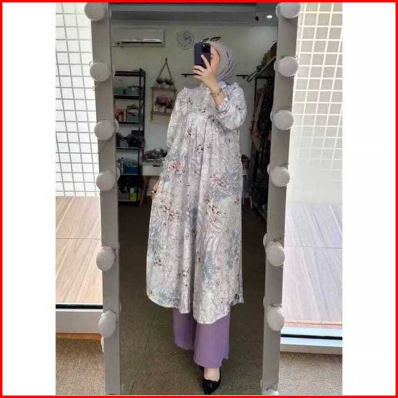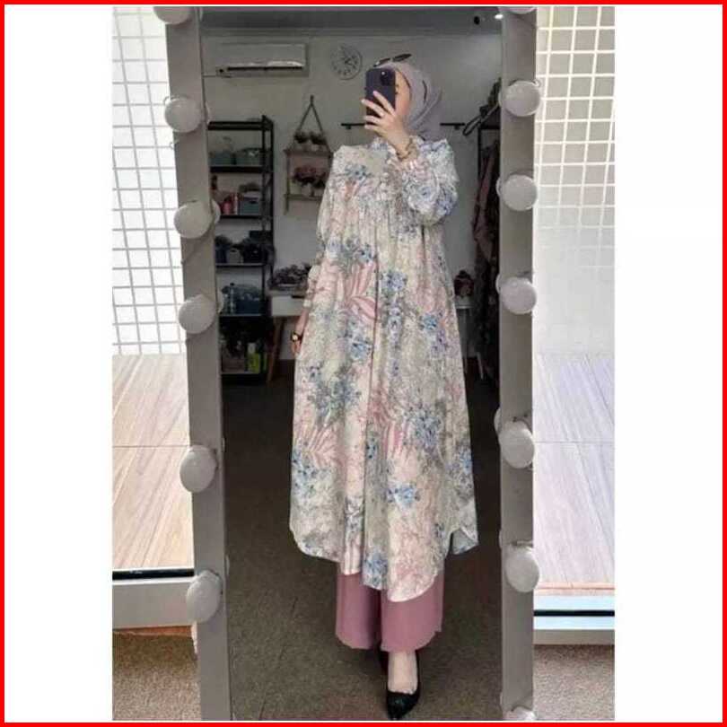 Rekomendasi - One Set Tunik Busui Rayon Diamond Motif Bunga Sakura Setelan Tunik Busui Kekinian Setelan Kekinian Terbaru