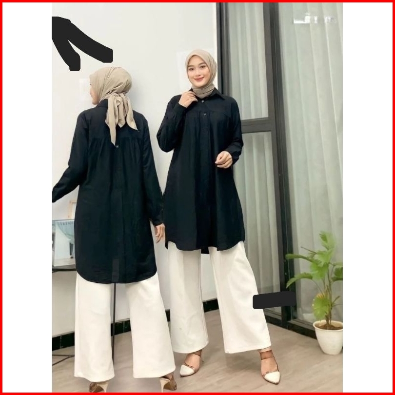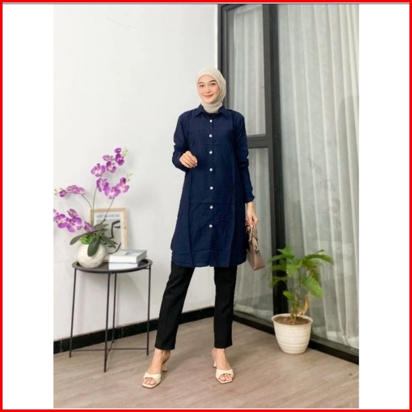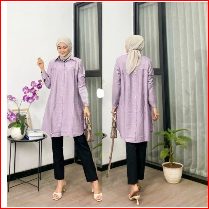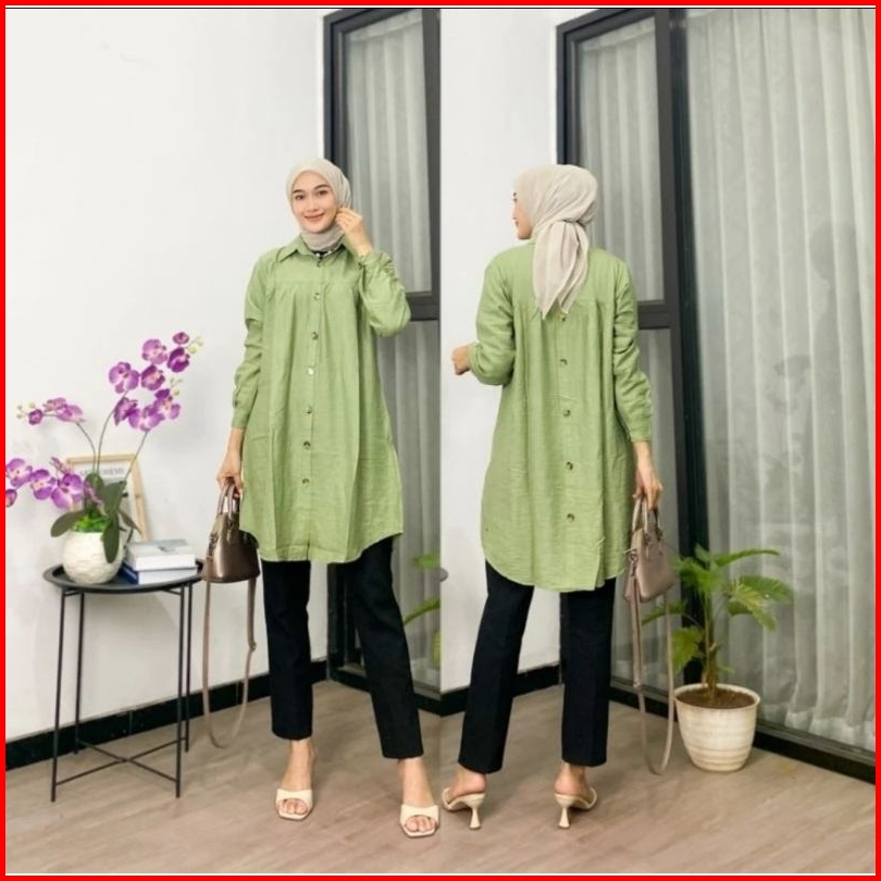 Rizki Tunik Baju Atasan Wanita Casual 2024 Kemeja Wanita Terbaru Katun Polos