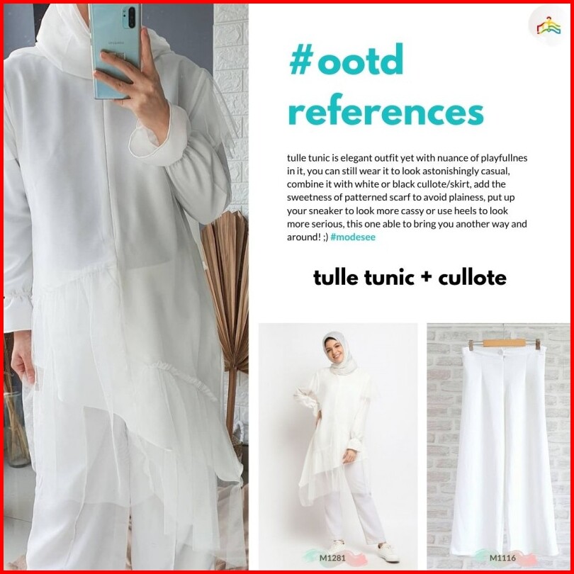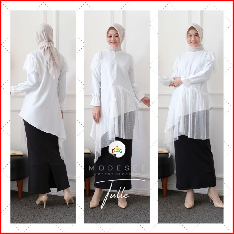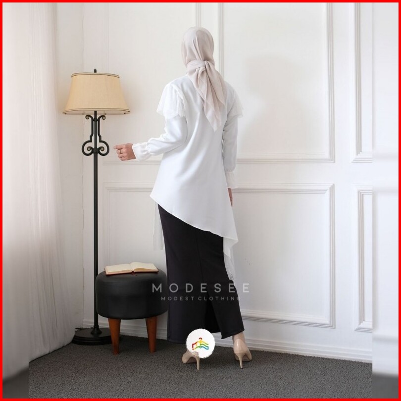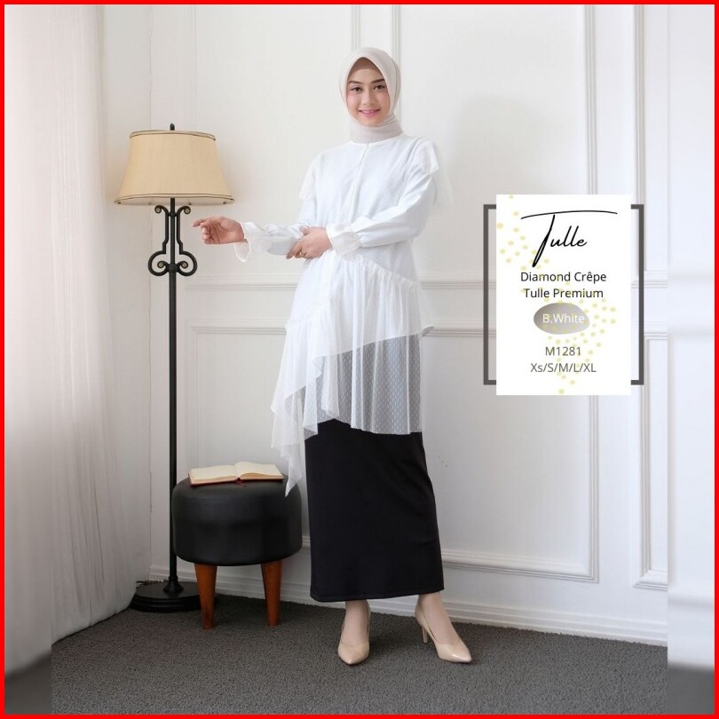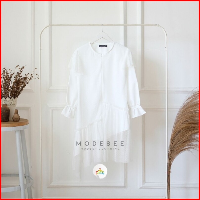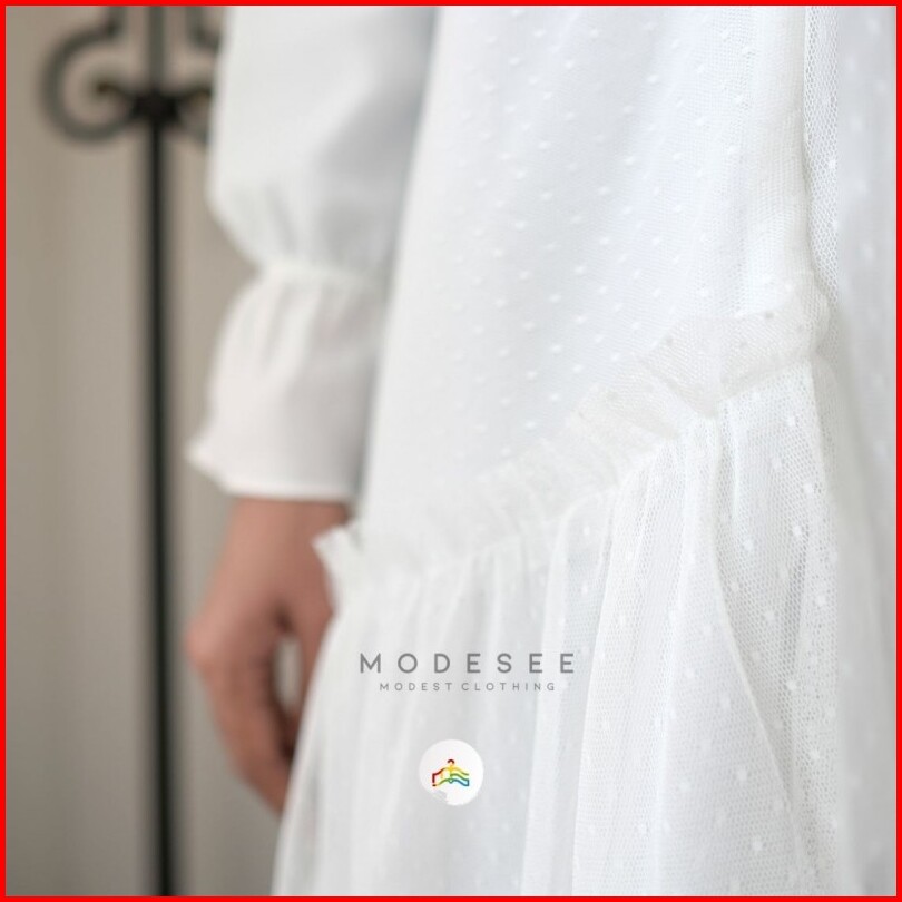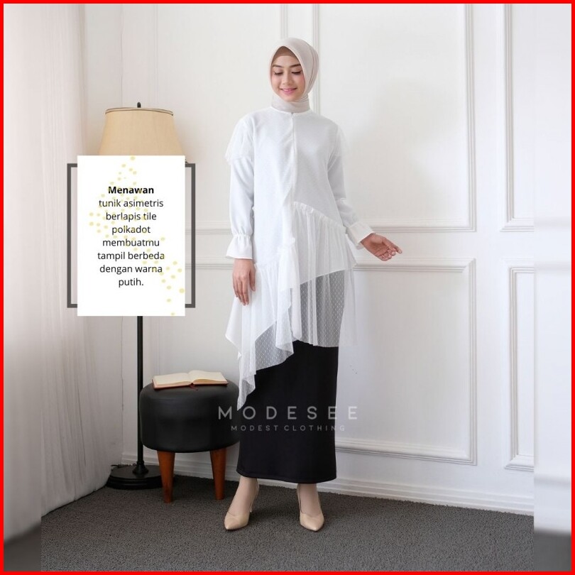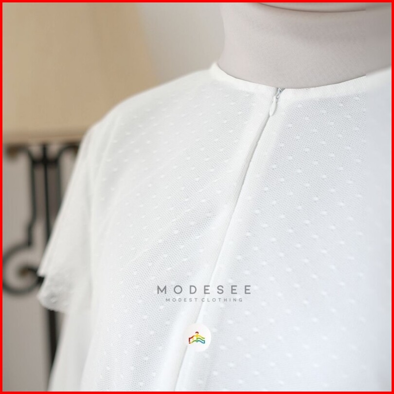 Modesee Tunik Putih Polos Wanita Muslim Tunik Dotted Tulle Diamond M1281 Atasan Polos Atasan Putih Tunik Putih