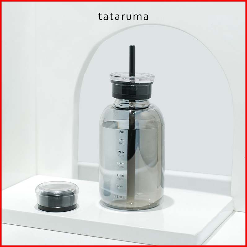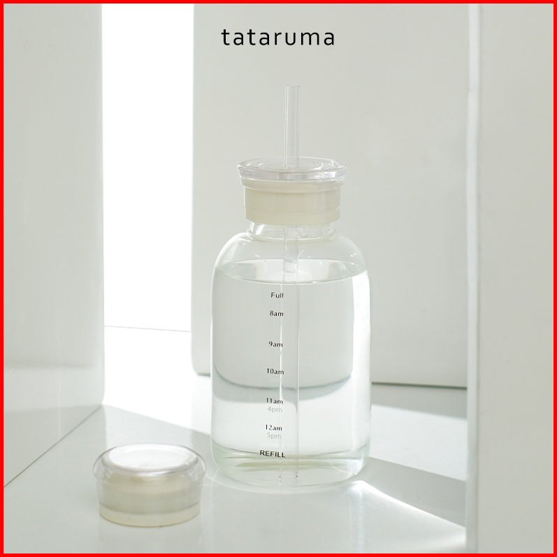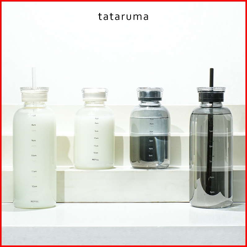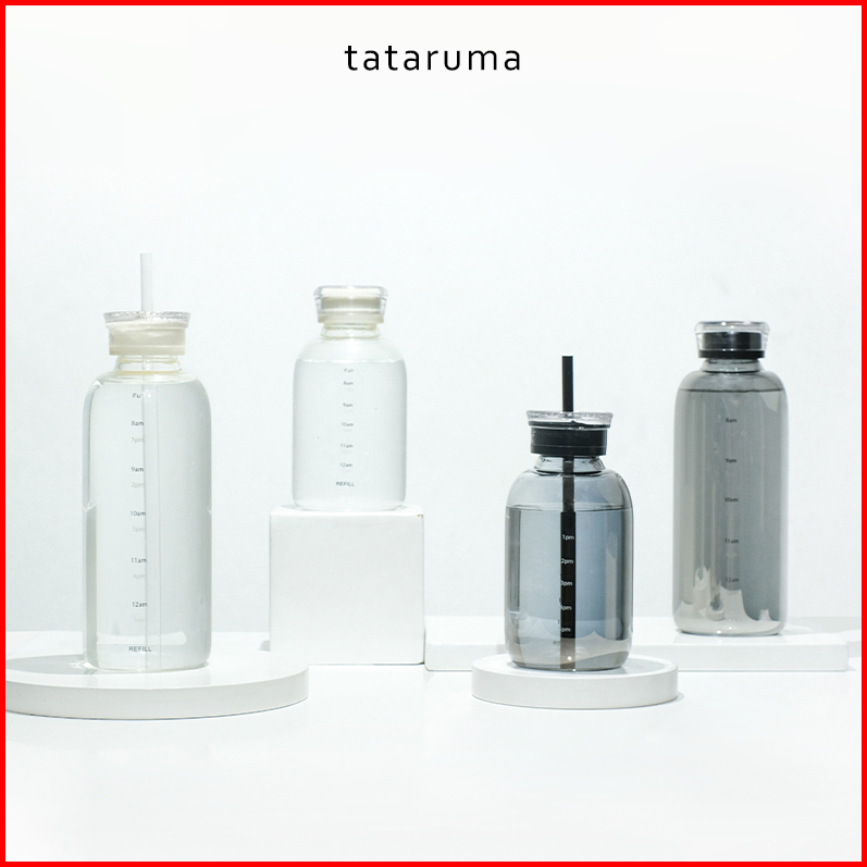 Tataruma Kagami - Botol Minum Kaca Tutup Ganda Sedotan Dengan Skala Waktu Anti Bocor