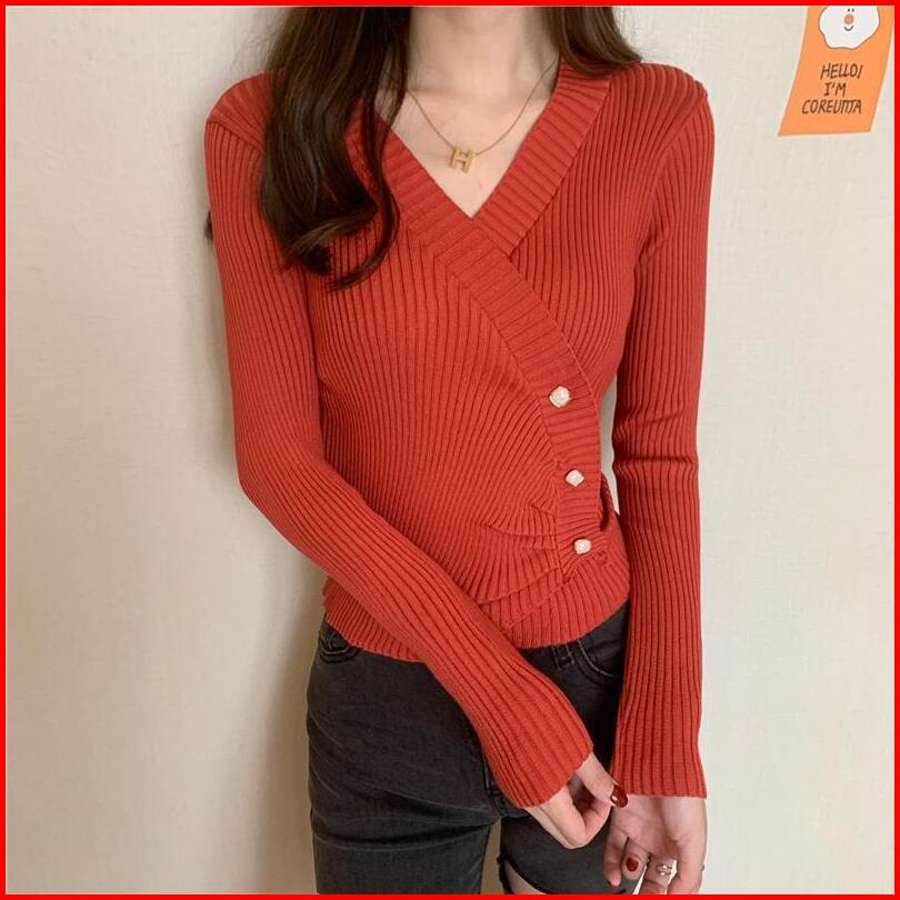 Ajw Atasan Wanita Kekinian Lengan Panjang Korean Style Rajut Premium Import Vneck Zr Atasan Rajut Wanita Import Lengan P